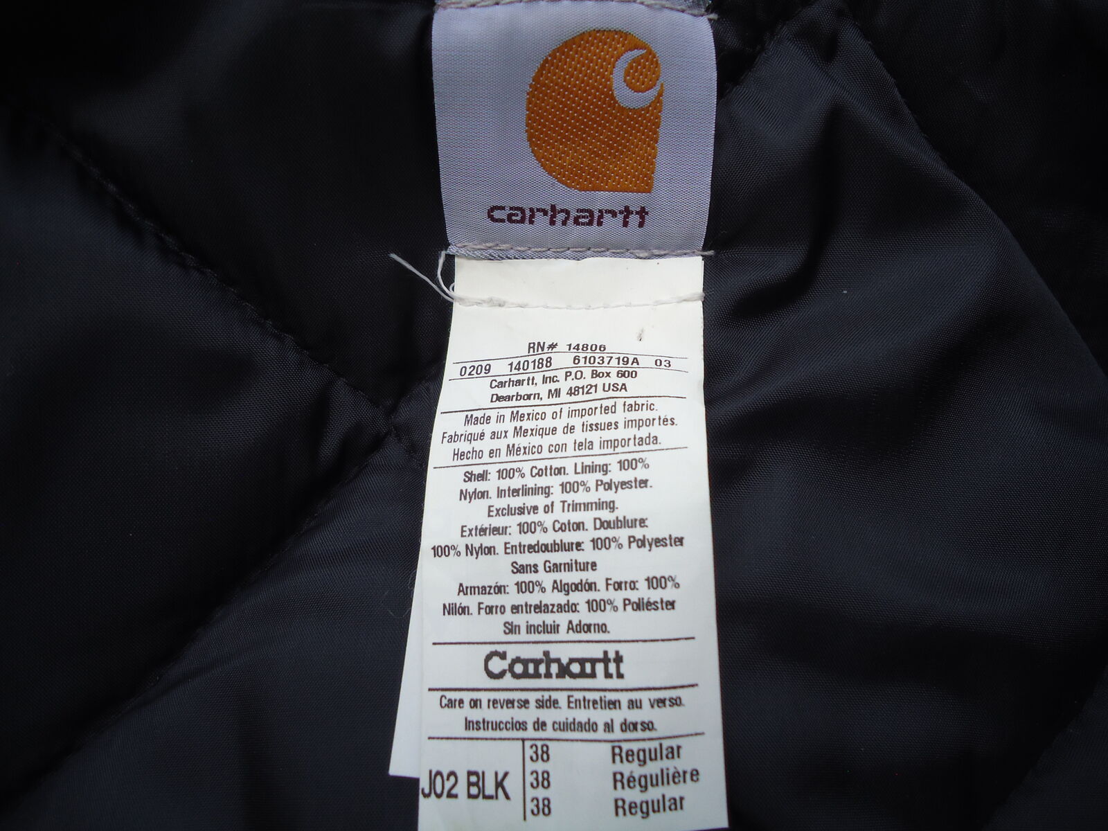 Black Carhartt coat jacket. Size 38 regular. It's shorter than most. Hits most people at the waist. Never been worn. Cash Only