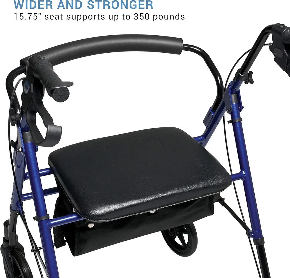 Graham-Field RJ4718B Lumex Set N' Go Wide Rollator Height-Adjustable Walker with Wide Seat, Short and Tall Use, Blue