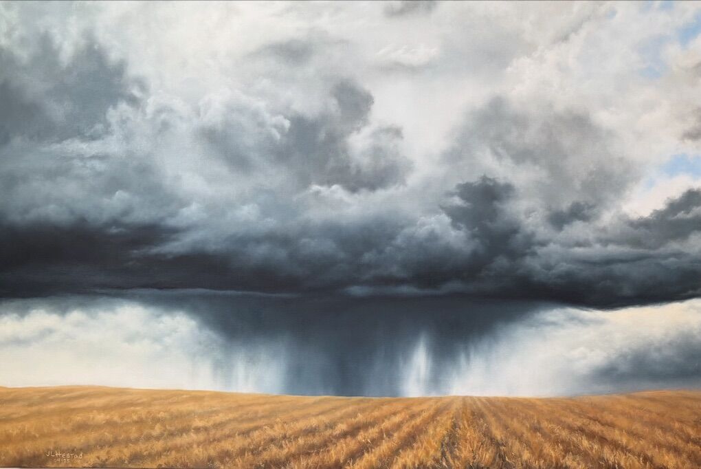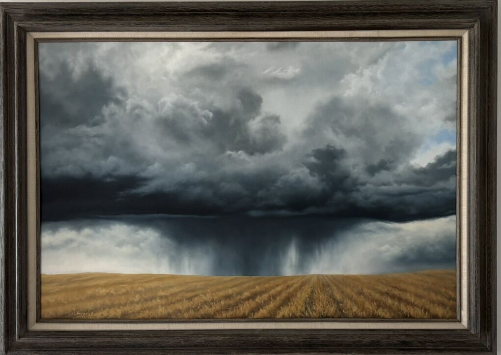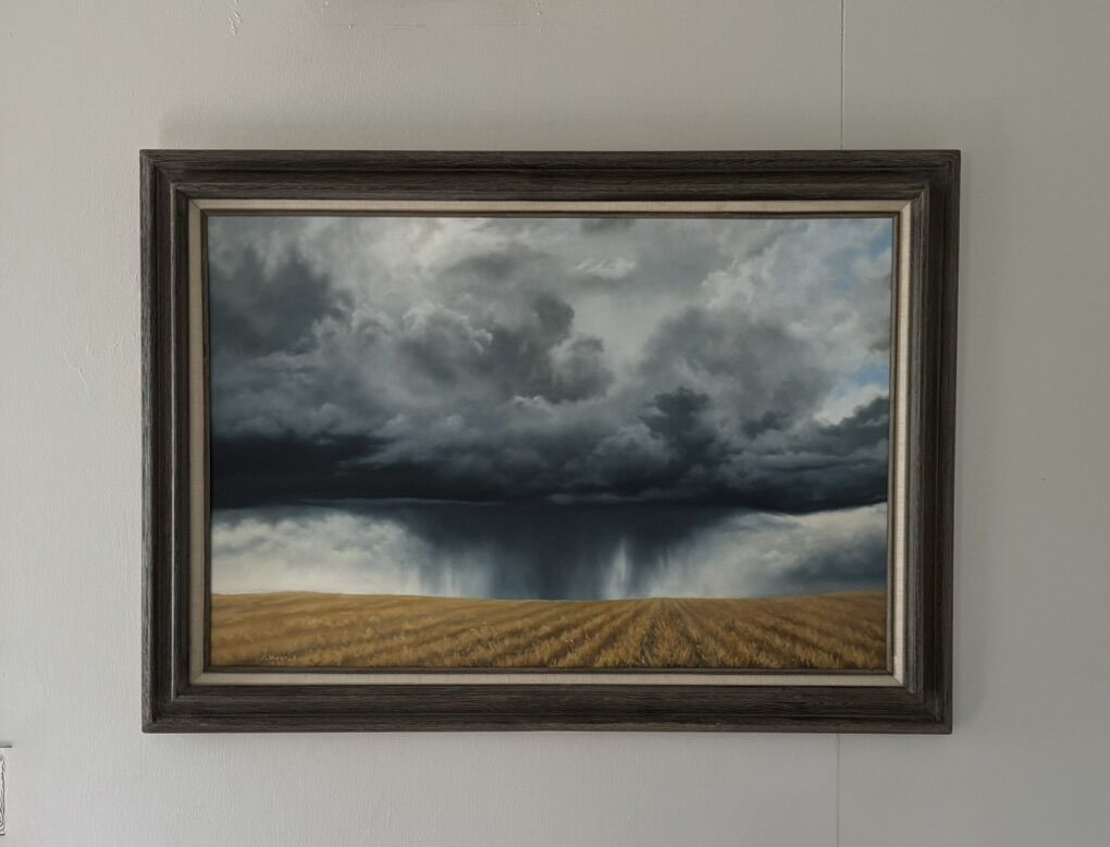 Venmo“Storm Descending” is a Vintage framed, original oil painting on stretched canvas. Its total measurements 30.5 inches by 42.5 inches.