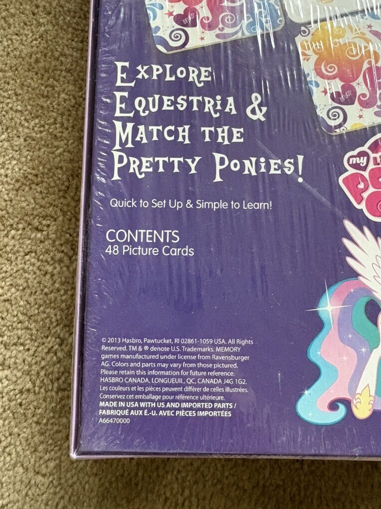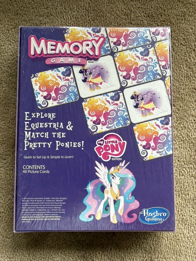 NEW (sealed in plastic) Memory Game: My Little Pony Edition. Match your favorite pretty ponies! 1+ players, ages 3+. Hasbro, 2013. New, unopened condition. Text only. Cash or Venmo.
