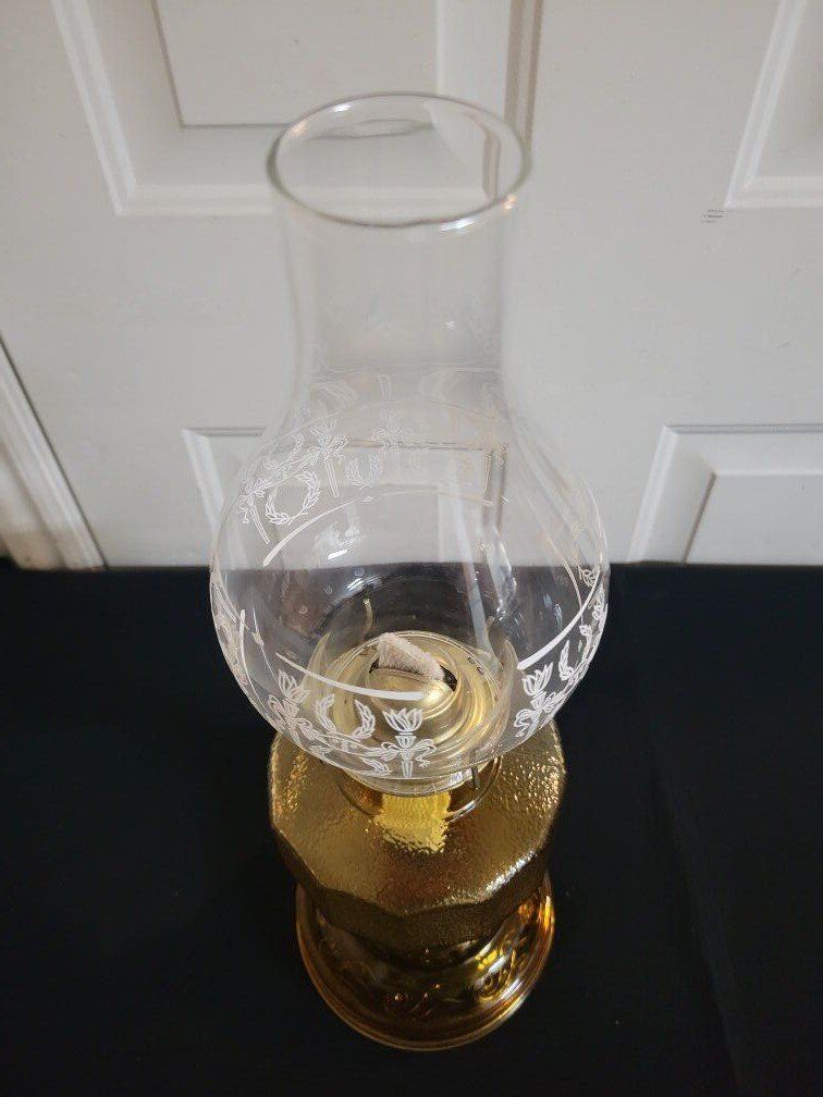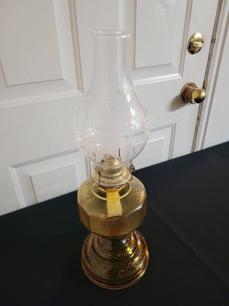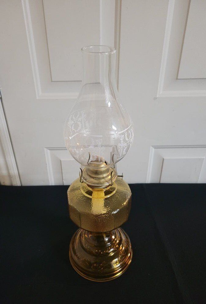 VenmoVintage Amber Glass Pedestal Oil Lamp Eagle Burner with Glove Base 11" Excellent Condition! inf 702 3558824