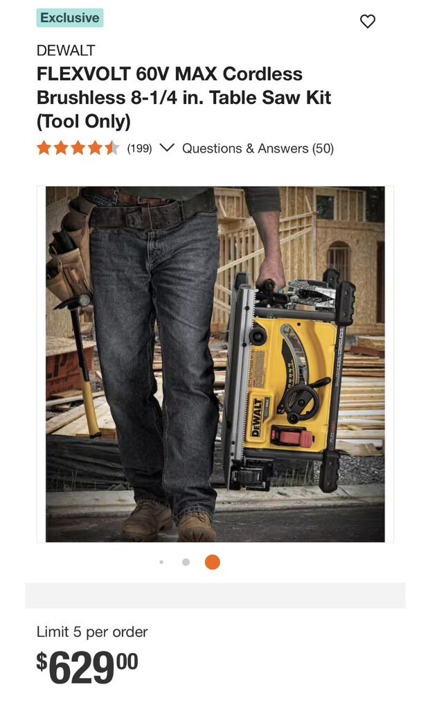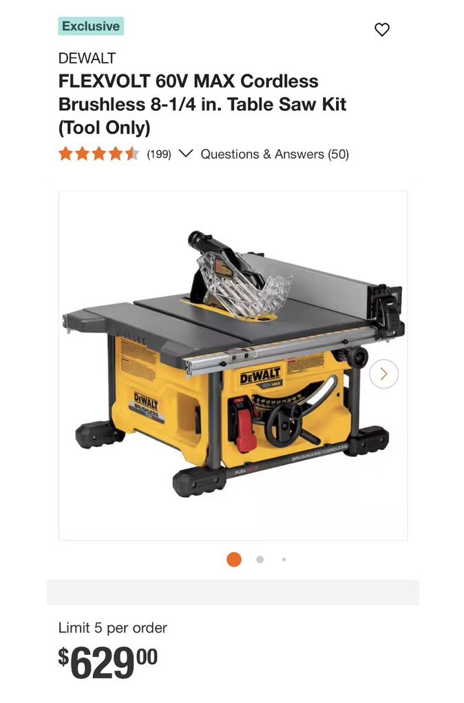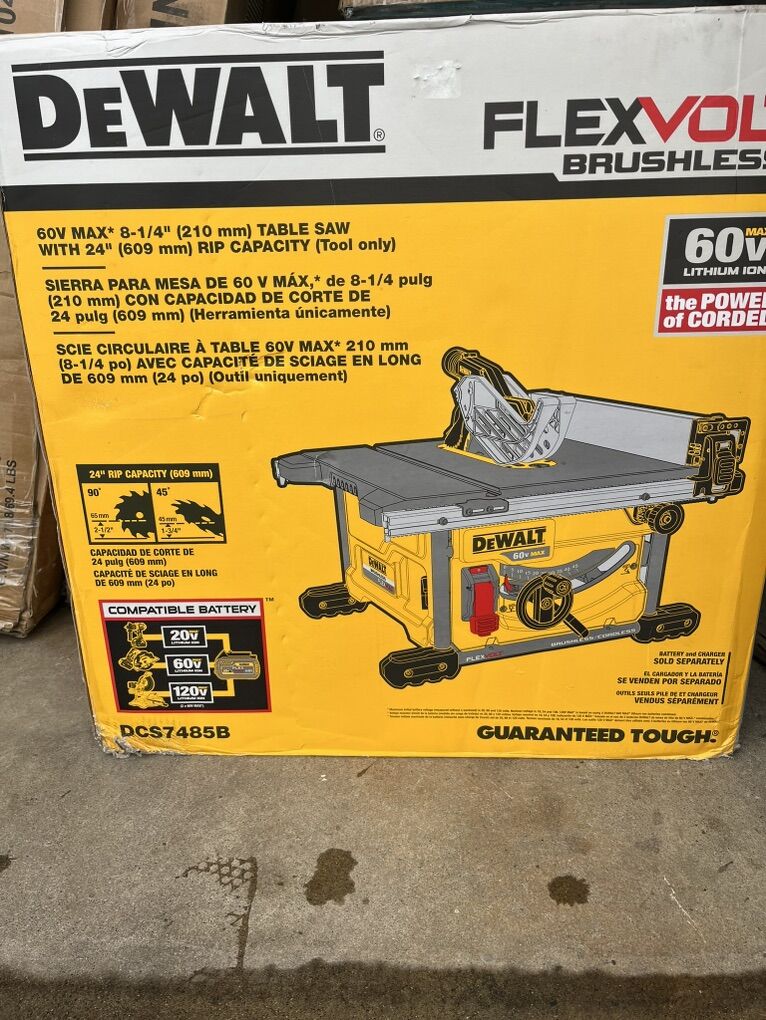 New Dewalt Flexvolt 60v Cordless Table Saw 8 1/4 Inch