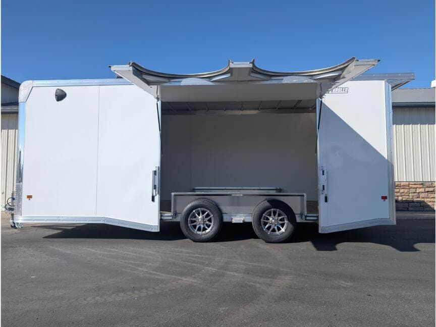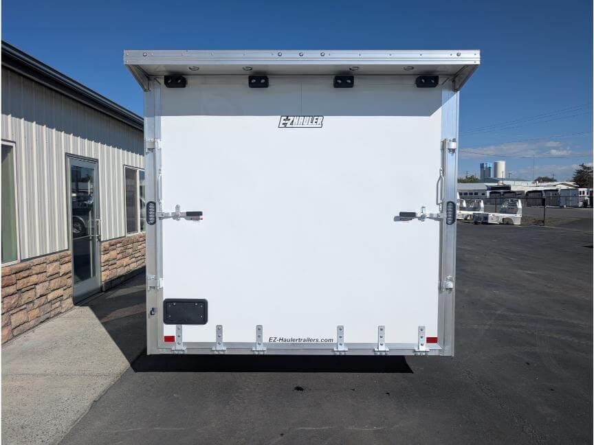 |Designed with aluminum construction and a focus on security, the EZ Hauler enclosed trailer delivers long-lasting durability and straightforward maintenance. The bonded side panels, white vinyl interior, and 4-inch trim create a clean, professional look while minimizing upkeep. The combination of twin 3.5K torsion axles, a spread axle setup, and an Elite Escape Door ensures reliable handling and convenient access to your cargo. This trailer is a smart fit for anyone seeking a reliable way to transport a car, UTV, and other equipment behind an RV, motorhome, or tow vehicle.