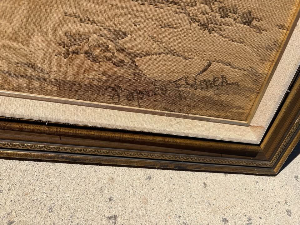 VenmoMeasures 60” x 33”. Large Antique signed tapestry wine cellar $400 cash/venmo in Draper