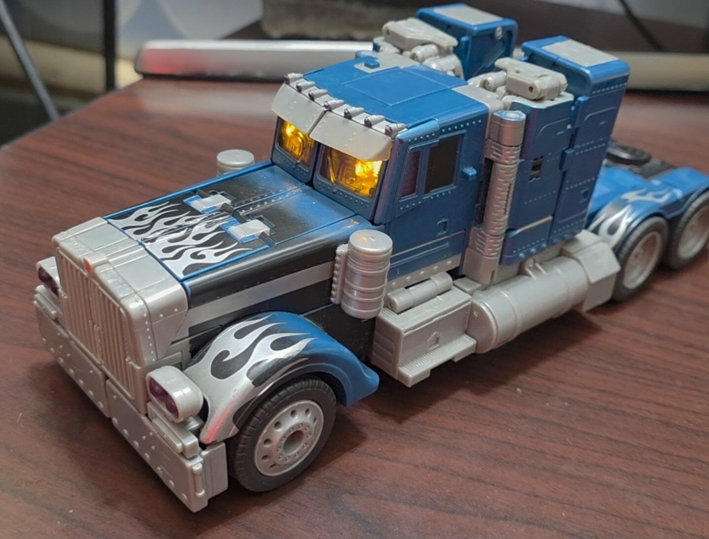 Pre-Owned Leader Class Nightwatch Optimus Prime | Transformers The Movie. Some missing parts see all photos, text message is better, see my other adds, thank you.