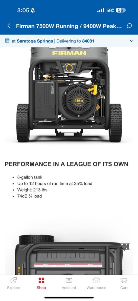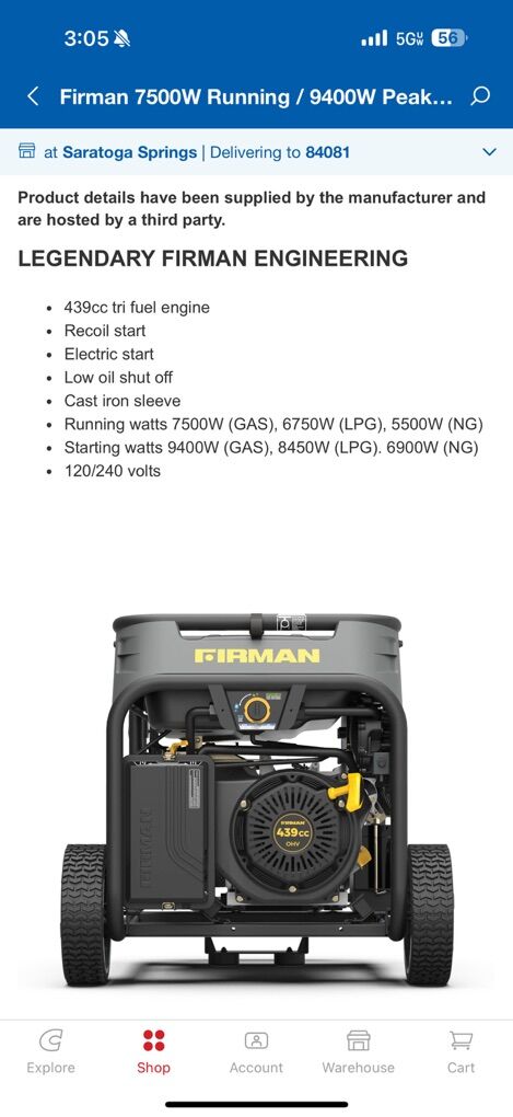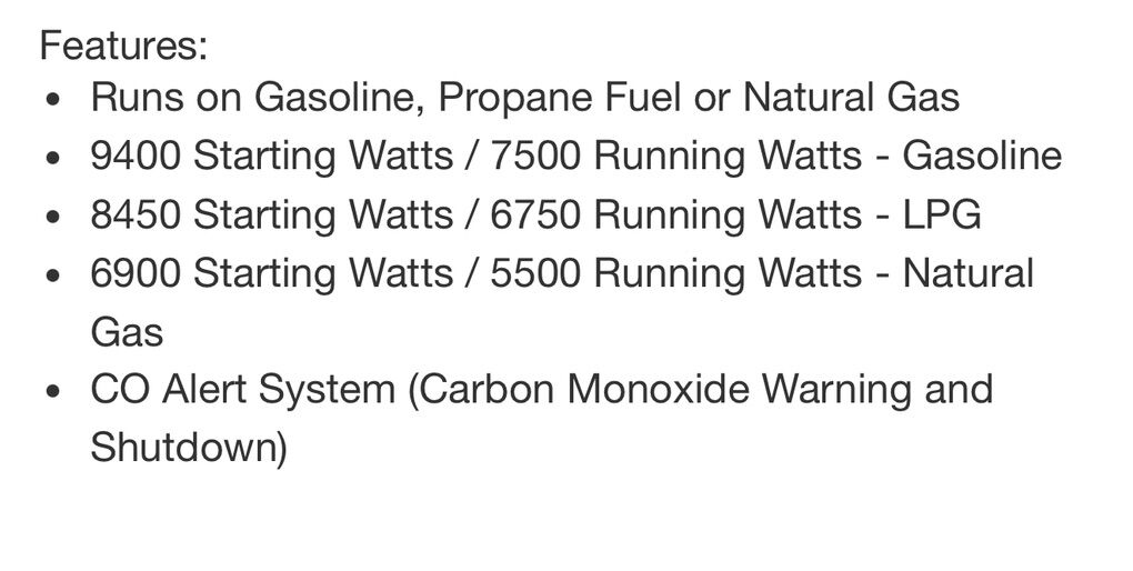 VenmoFirman 7500W Running / 9400W Tri Fuel Generator