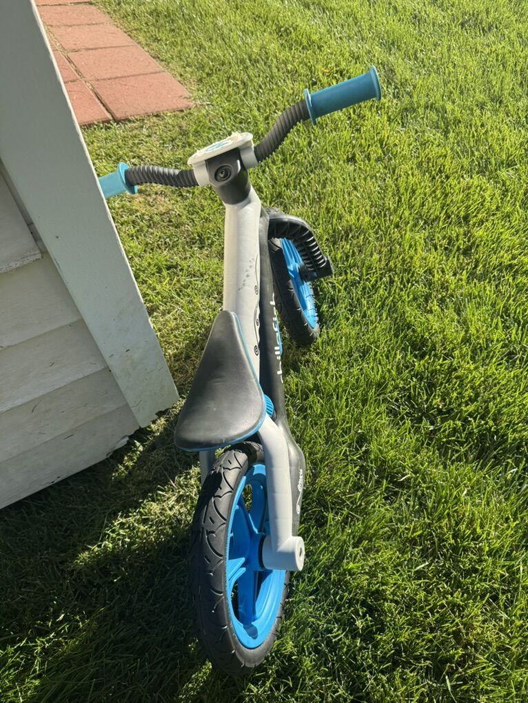 The bike has 12-inch airless RubberSkin tires, which provide good grip without the need for inflation.