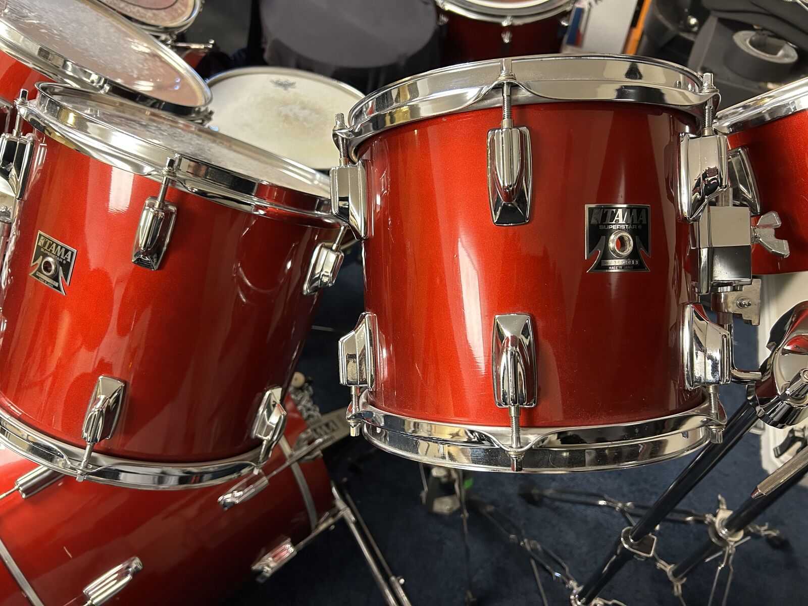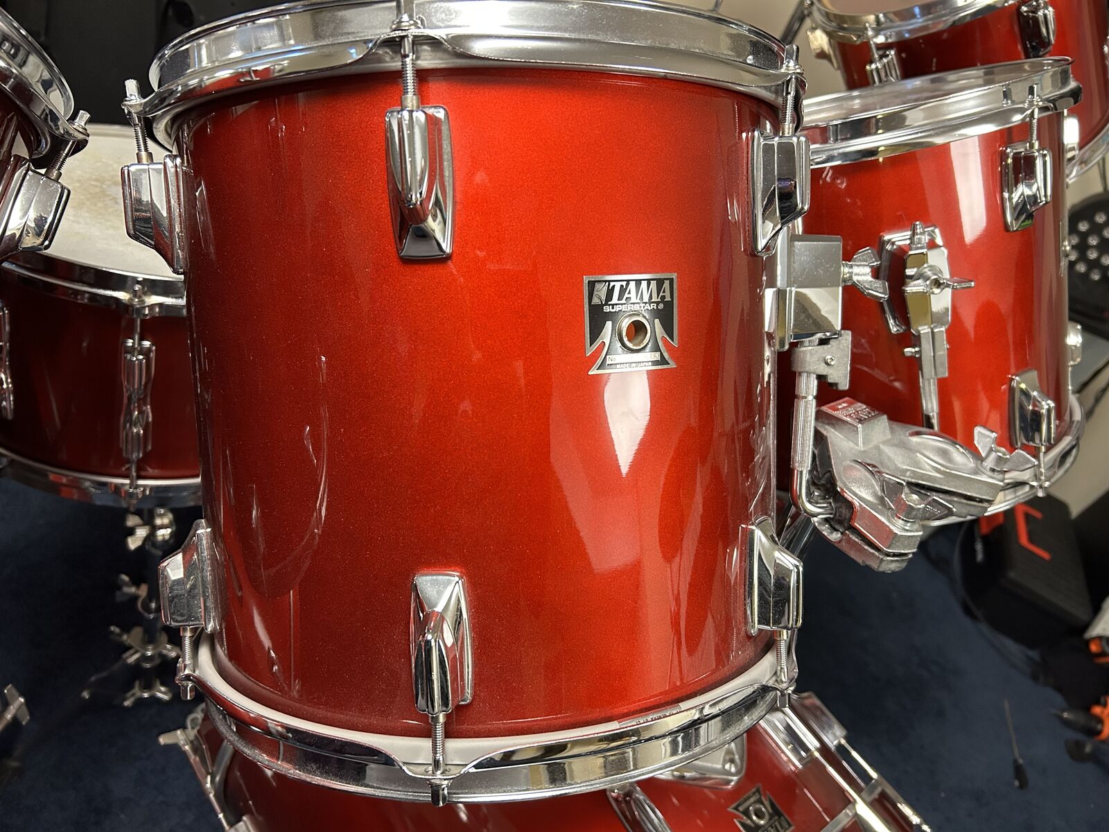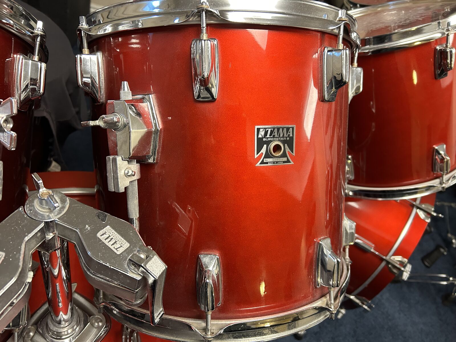 Huge, Vintage TAMA Superstar '85-'86 in the beautiful Candy Apple Red finish that was created by TAMA for Neil Peart of RUSH (as the story goes). This kit is truly 1 of a kind. All birch shells. 13 drums total. 6 & 8 inch concert toms with the stand. 10, 12, 13, 14, 15 inch rack toms, 16 & 18 inch floor toms, 22 & 24 inch kick drums and a 14" x 8" deep snare. Cymbals and cymbal stands Not included.