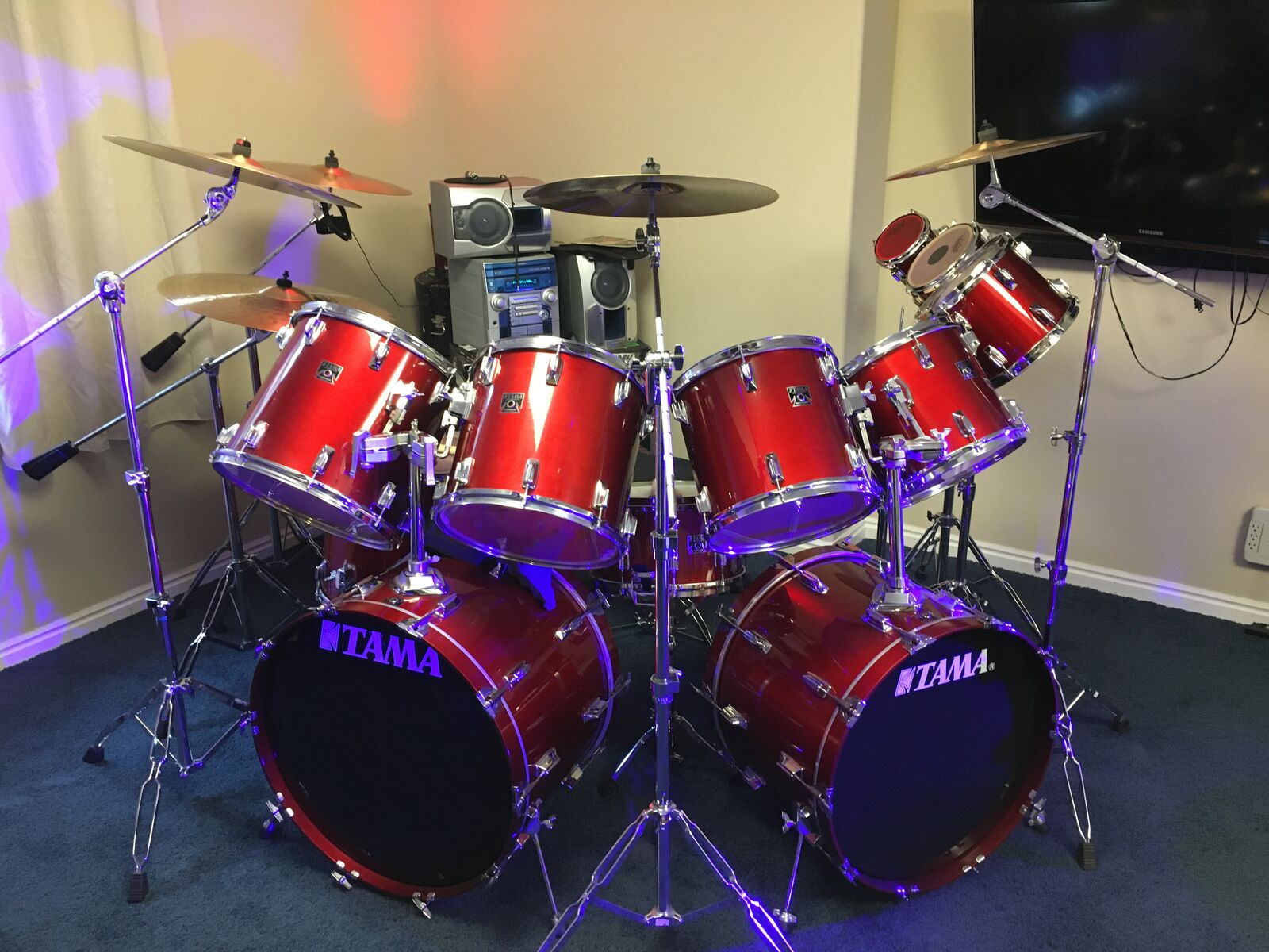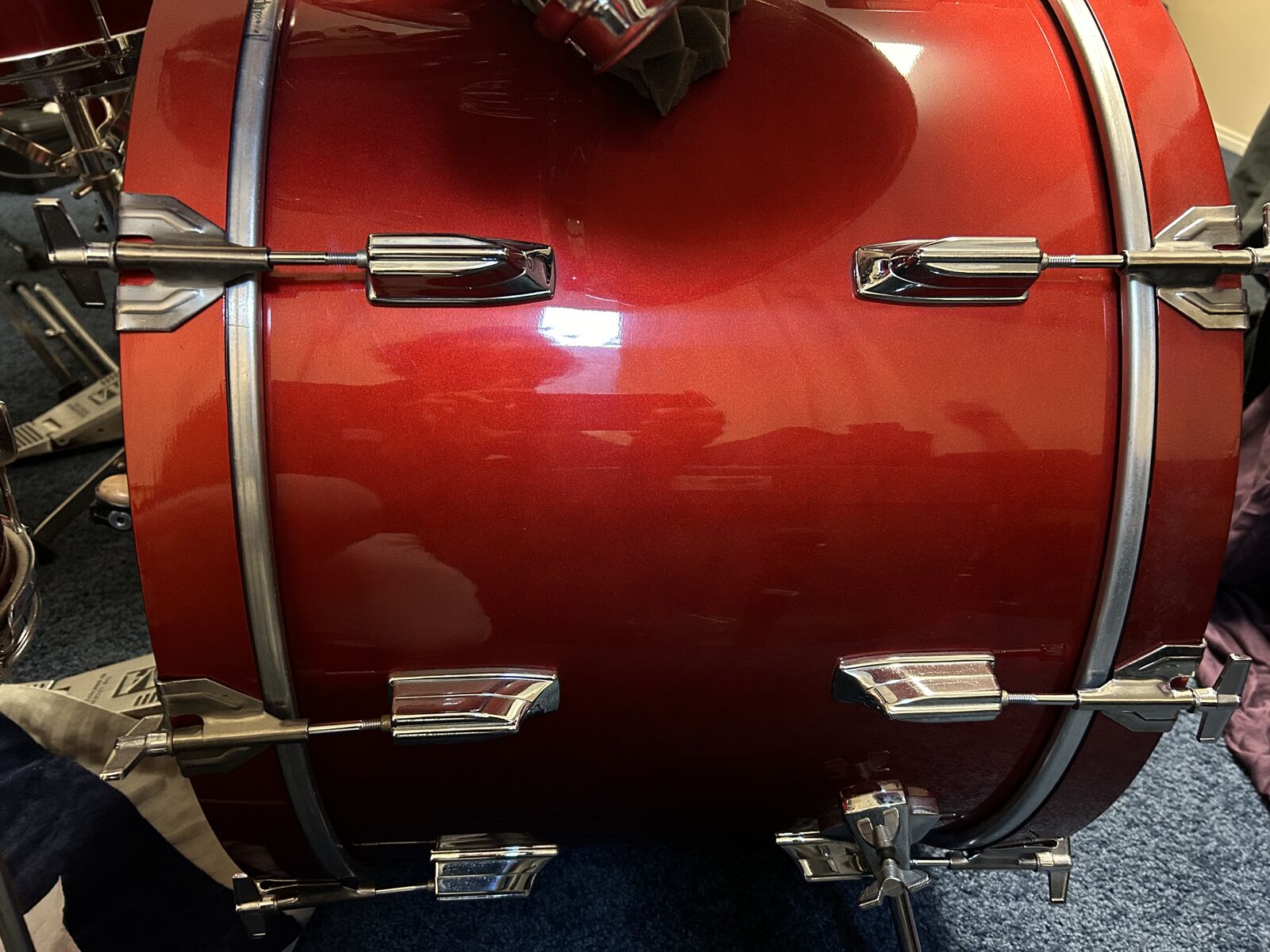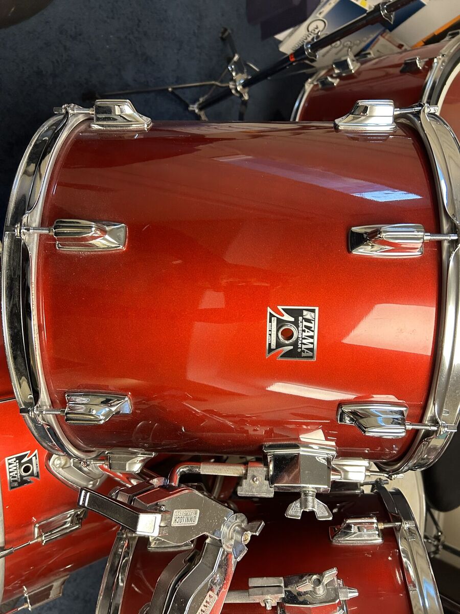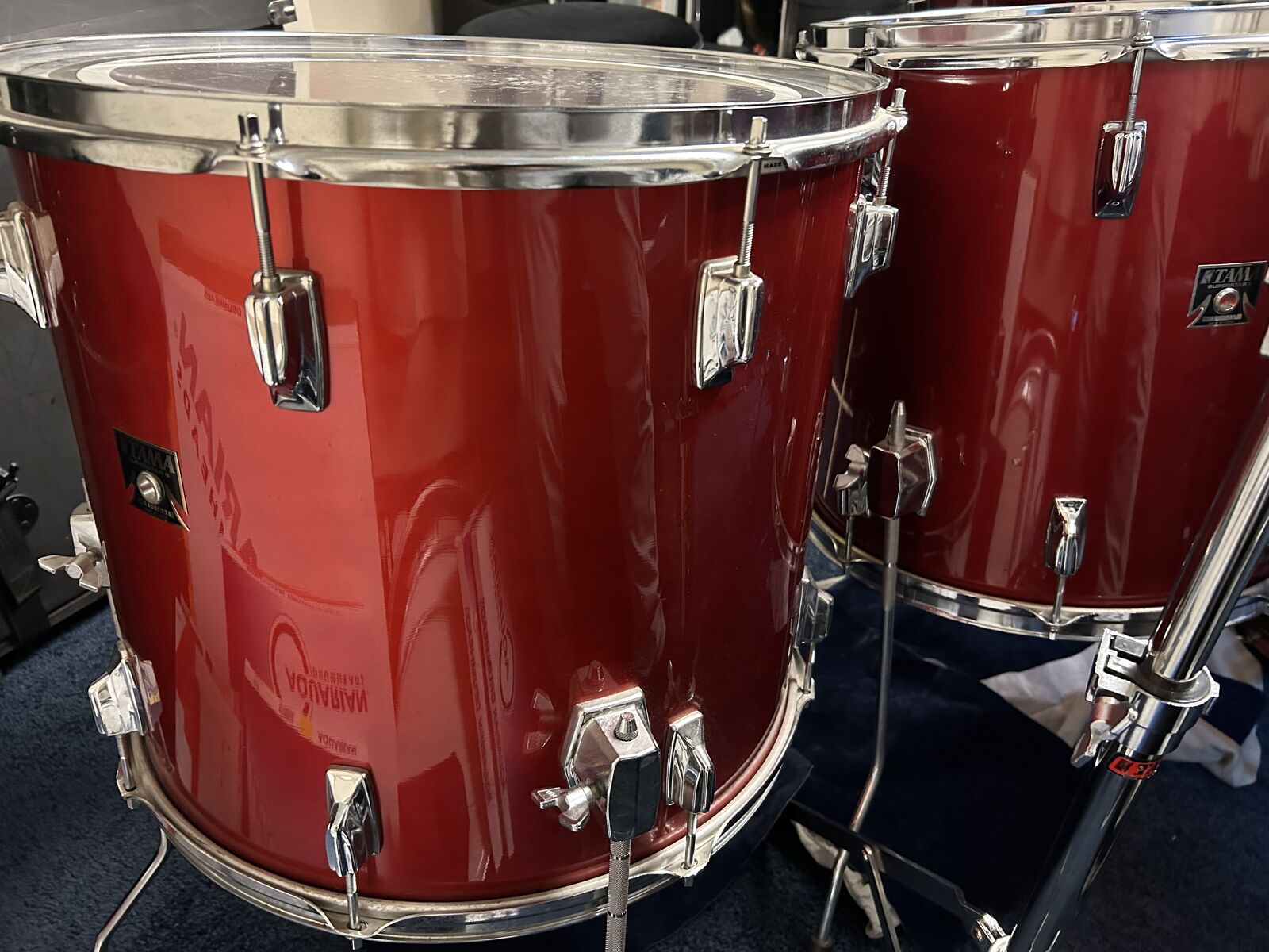 Huge, Vintage TAMA Superstar '85-'86 in the beautiful Candy Apple Red finish that was created by TAMA for Neil Peart of RUSH (as the story goes). This kit is truly 1 of a kind. All birch shells. 13 drums total. 6 & 8 inch concert toms with the stand. 10, 12, 13, 14, 15 inch rack toms, 16 & 18 inch floor toms, 22 & 24 inch kick drums and a 14" x 8" deep snare. Cymbals and cymbal stands Not included.
