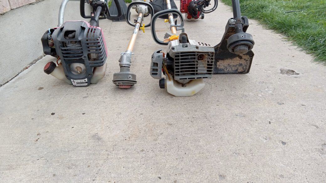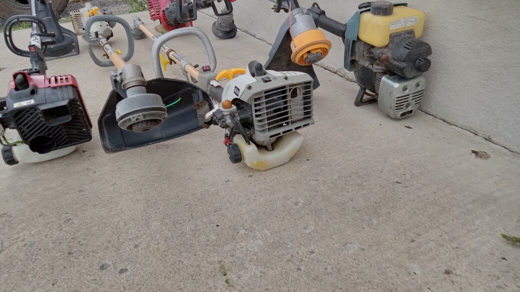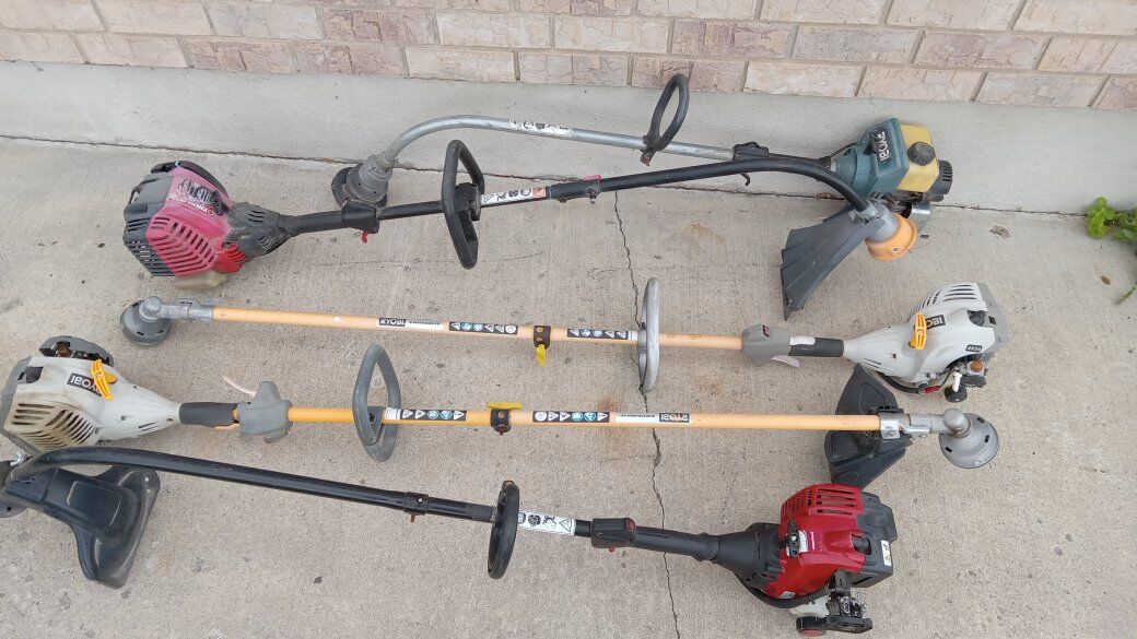 Venmo(Price reduced on 12/8) Up for sale are Weed Wackers or trimmers by Troy Bilt(Built), Murray, and Ryobi. All of them have small gas engines on the top of the unit making them portable. The two yellow Ryobi have SOLD. The rest of them (green Ryobi, Troy Built, and red Murray) we are selling for parts because they have gas tubes to the gas tanks that are broken. The rest of the parts are in good condition with the engines not seized and would run with a little maintenance.