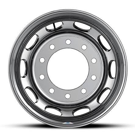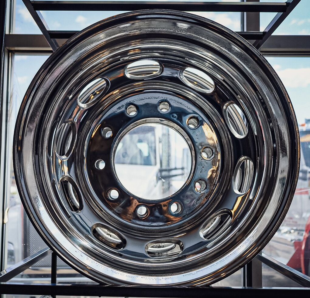 Polished 22.5x8.25 aluminum peterbilt signature wheels. Wheels are used.