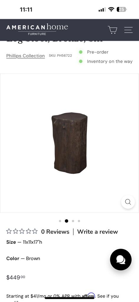 Phillips Collection Copse Stool/Side Table, brown Leaf, Small Dimensions — 15L x 11W x 18H Gorgeous SideTable/Stool by Phillips Collection is a perfect complement to your modern-organic aesthetic. Made of resin