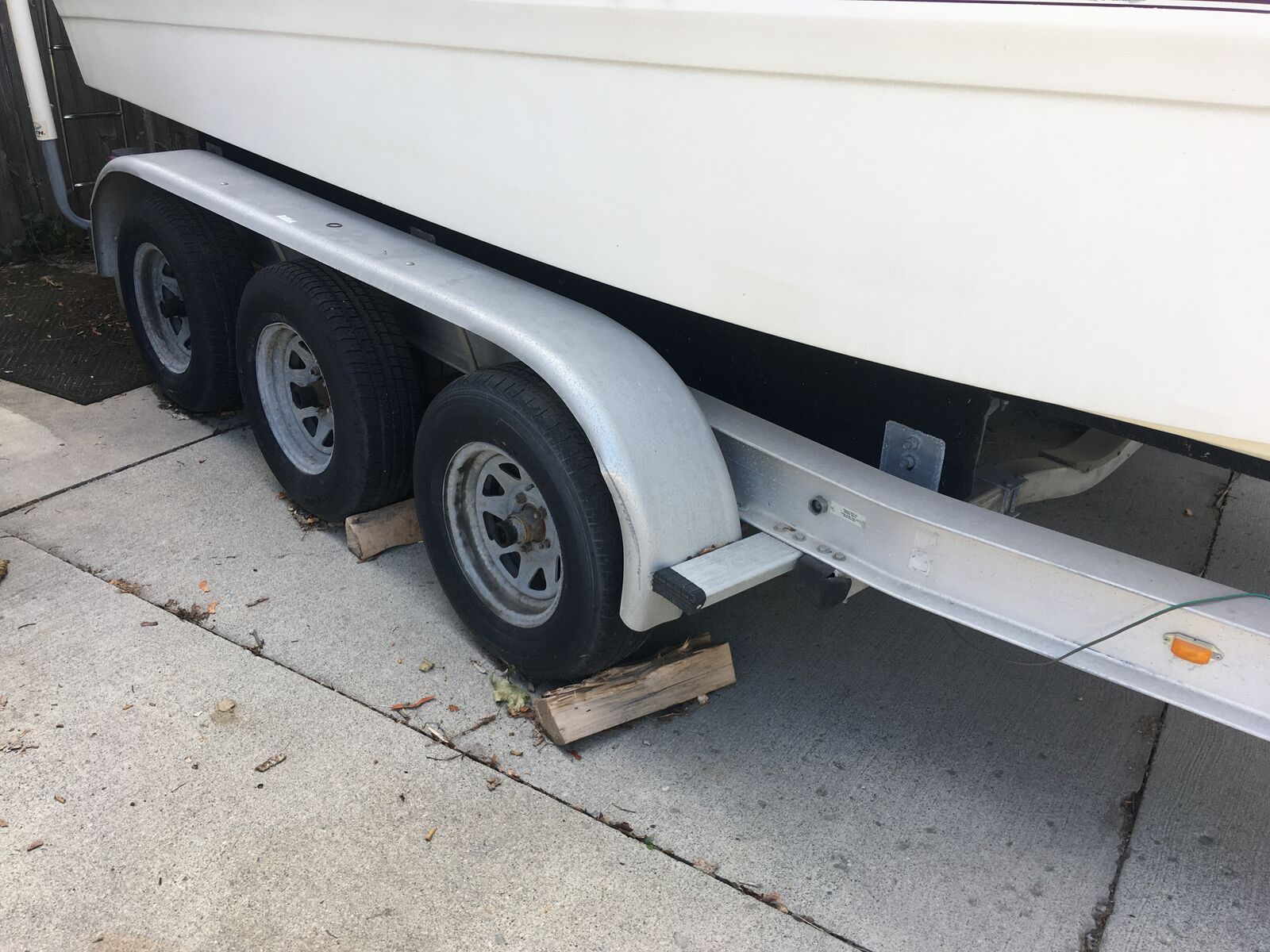 Triple axle aluminum boat trailer. It has a 23 foot boat on it. The trailer itself is 28 feet. $8,000 OBO. Sold as is. Cash only. No trades. Boat is not included and will be removed before sale. GVWR of 9,965 lbs.