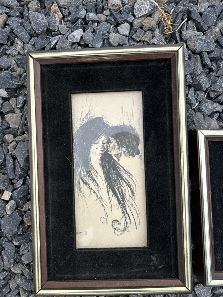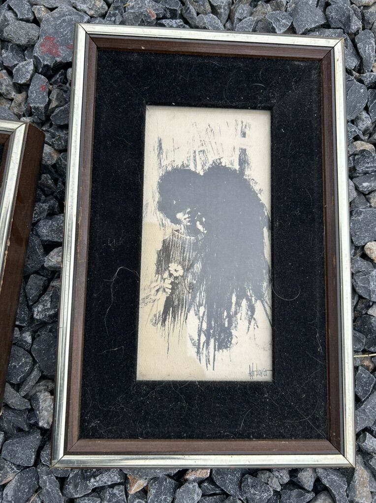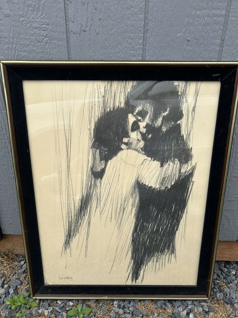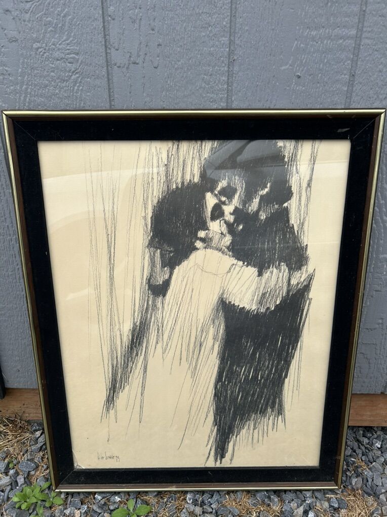 CashAppAldo Luongo 1969 Charcoal Lithograph The larger one is called the lovers The three smaller ones accompany it all are in great condition and have a black velvet trim lining the lithograph that buts up to the frame. So you’re purchasing a total of 4 charcoal lithographs. The larger one entitled the lovers is selling on Etsy and eBay for $300 to $500 just for the one image I am asking $440.00 OBO for all four of them.