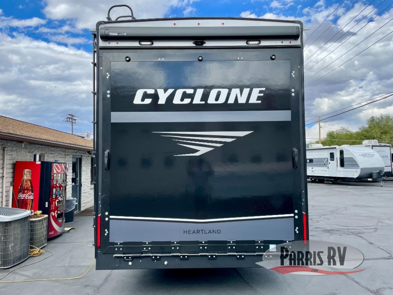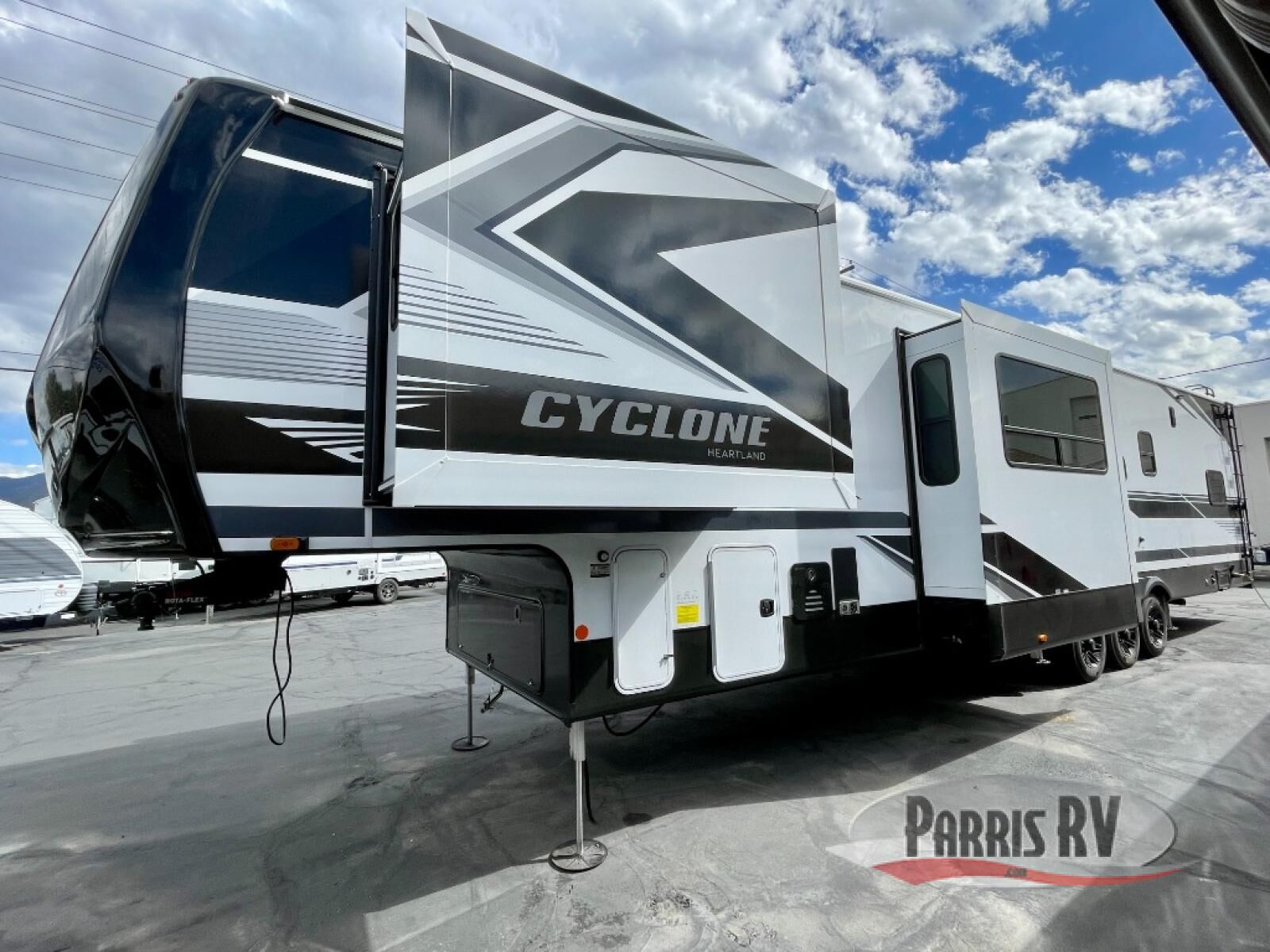 Satisfy your wanderlust with a Heartland Cyclone fifth wheel toy hauler! You won't have to sacrifice any luxury either, with indulgent features like the ducted, fully enclosed, and heated underbelly provides added protection and warmth. Inside, the LED interior lighting throughout ensures that every corner of your RV is bright and inviting, and the bathroom skylight brings in natural light and fresh air, creating a welcoming and refreshing space. Plus, the central command center with built-in tank monitoring keeps you informed and in control, making it easy to manage your resources. Also, the Premium Exterior Package includes diverse features such as Dexter axles with ABS and tow assist with sway mitigation, and the Keyed-Alike lock system ensures that all your locks are keyed the same, providing added security and convenience. Come find the perfect model for you today!