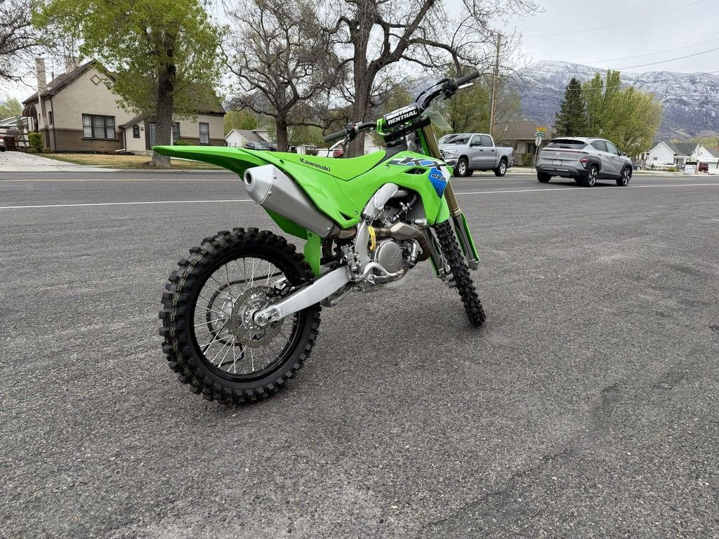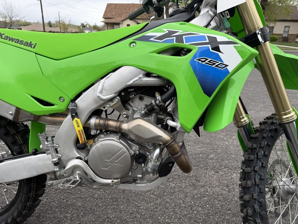2026 Kawasaki KX™450THE BIKE THAT BUILDS CHAMPIONSThe KX™ legacy represents a long line of champions. The drive to produce more has not slowed down. Our flagship KX™450 motorcycle offers next-level engineering and power to dominate the track. Over the decades, we've learned what it takes to win and stay on top. The KX450 embodies this legacy to the fullest.Features may include:POWER & PERFORMANCEBUILT TO WINThe KX™450 motorcycle engine delivers broad, useable torque and strong, responsive power across the rev range. From the starting gate to the finish line, this race-ready machine is built to stay ahead of the pack. RACE-READY SUSPENSIONLEAVE THEM IN THE DUSTTake the lead with proven race-winning performance. The highly adjustable Showa suspension package delivers smooth action, firm damping, and contributes to optimal traction.ADVANCED TECHNOLOGYRIDE WITH CONFIDENCEAll KX™450 motorcycle advanced controls are streamlined for rider convenience. Kawasaki TRaction Control (KTRC), Power Mode Selection, and Launch Control Mode are available at the push of a button. These features enable riders to quickly adjust power delivery and traction for riding conditions and preference. The KX450 offers superior features designed to inspire confidence. CHASSIS & ERGONOMICSMADE TO SHAVE LAP TIMESExperience the race-winning advantage of a strong and lightweight chassis, agile handling, and exclusive ERGO-FIT® technology.ADDITIONAL:Lightweight aluminum perimeter frameStraight exhaust port and center exhaustODI lock-on gripsQuick-release side cover offers tool-less air filter accessStreamlined ergonomics for easy rider movementConed disc-spring hydraulic clutch K15016