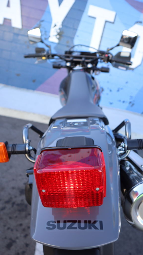 Available in Solid Black/Gray or Special White with bold graphics, the DR650S combines rugged looks with everyday comfort. The long, cushioned seat, aluminum footpegs, and passenger grab handles make it perfect for solo or two-up riding.