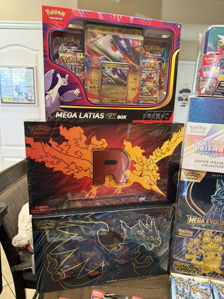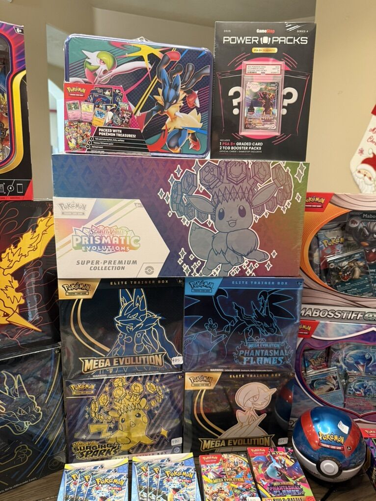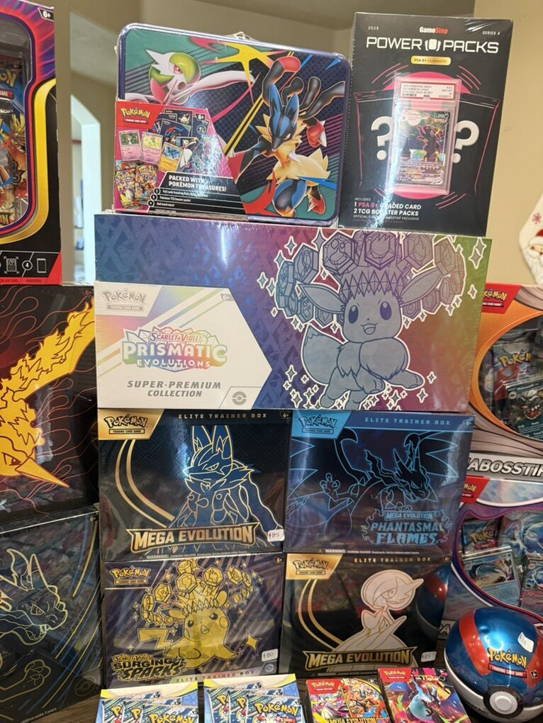 Team Rocket Moltres EX Ultra premium Collection: $220 Mega Charizard X EX Ultra Premium Collection $200 Presmatic Evolutions Super Premium Collection $250 GameStop Power Pack:$200