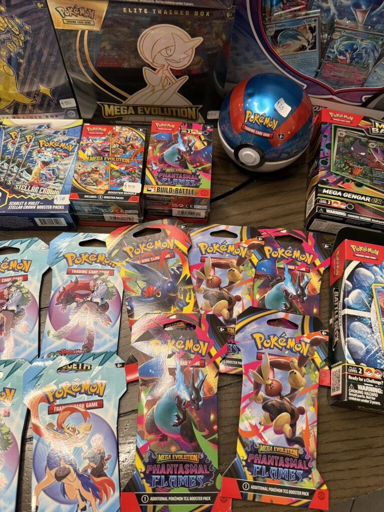 Stellar Crown 3 Booster Packs:$25 Phantasmal Flames Booster Bundle Build to Battle: $55 Mega Evolution Booster Bundle: $50