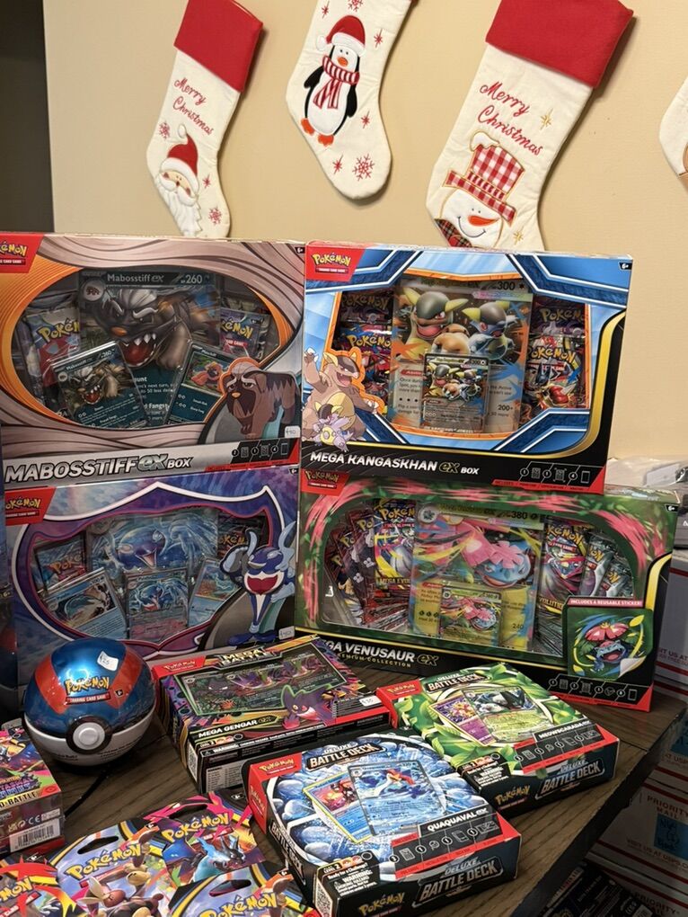 Palafin ex box: $40 Mega Kangaskhan ex box: $45 Mega Latias ex Box: $40 Mabosstiff ex Box:$40 Mega Gardevoir & Mega Lucario Collector's Chest Tin Set: $50 Mega Venusaur ex premium box:$60