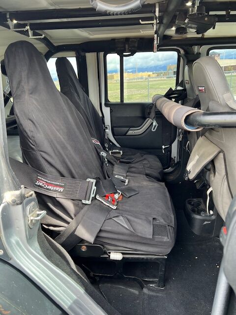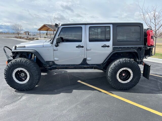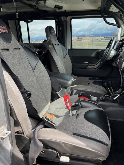 • 2014 Jeep Wrangler Unlimited (13,000 miles) • Originally built by Off Road Evolution (build cost $165,000) • Engine – 6.4 HEMI • AEV heat reduction hood • Transmission – Custom ReidTurbo 400 with manual valve body art carr shifter • Transfer case – Atlas 4 speed with 5.4 gear ratio • Axles – Dynatrac Pro rock 60 and 80 with 5.38 gears and ARB lockers • Drive shafts – JE Reel 1410 rear and 1350 front • Steering – PSC hydraulic assist • Wheels – 17 inch slab bead locks with aluminum rings (5) • Tires – 40 inch Nitto trail grapplers (5) • Armor – Evo rear rock skin corners, Poison Spyder front & rear crusher flares • Bumpers – EVO bumpers front quarter pounder w/ stinger & rear w/ 40-inch tire carrier w/ rear frame cap • Roll cage -Poison Spyder cage with C-pillar kit welded to the frame • Winch – Warn 9.5 CTI-S • Suspension – EVO double throw down front & rear w/ king coilover & bypass / rear king bump stops • Sway bars – Currie antirock aluminum front & rear • Seats – 4 Mastercraft Baja RS recline bucket seats with harnesses • Lighting – Rigid E-Series 50 inch LED light bar and rock lights