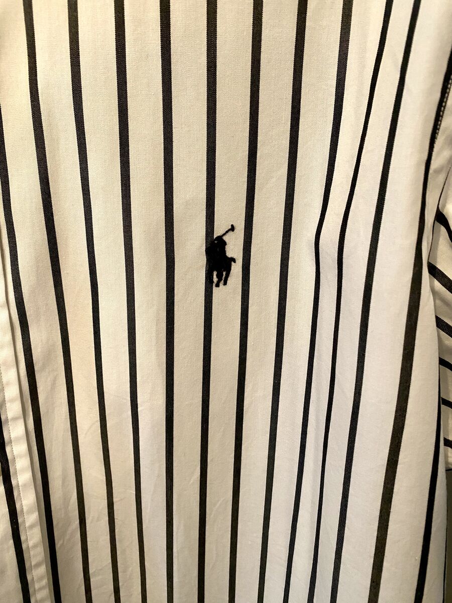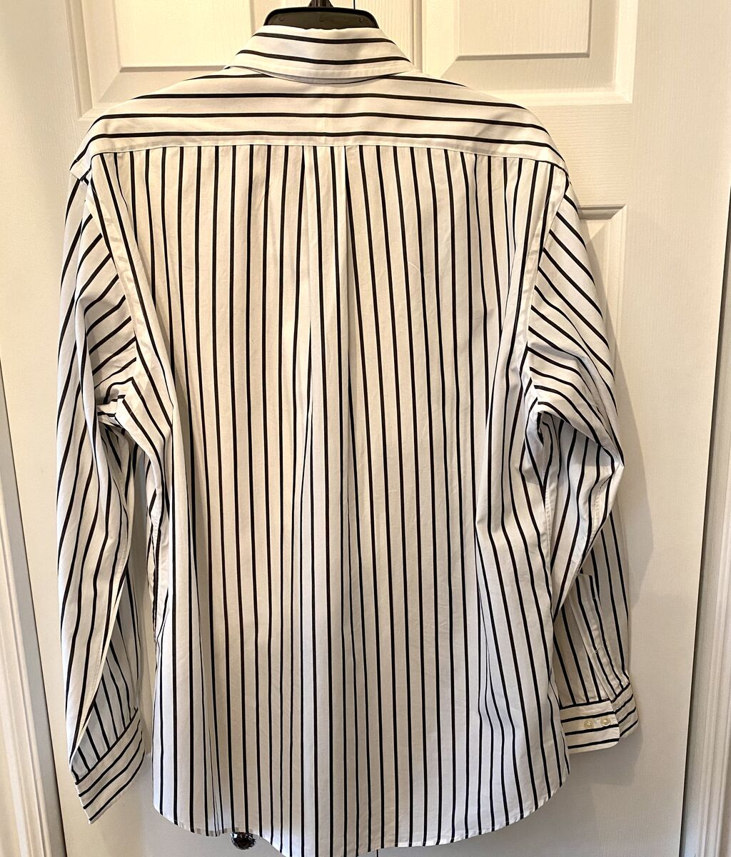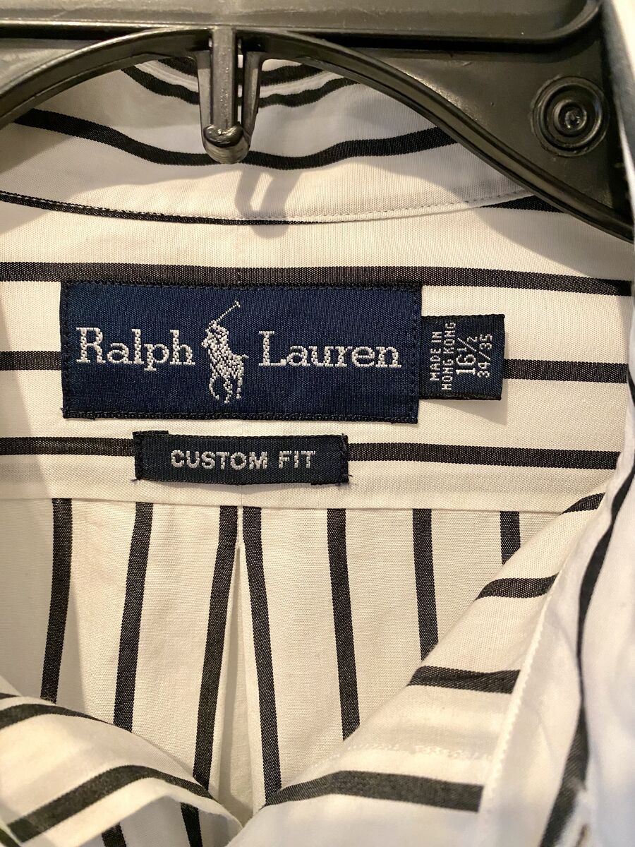 Great Mens Ralph Lauren Long Sleeve Dress Shirt White W/ Black Stripes - SZ 16.5 34/35 - C PIX.