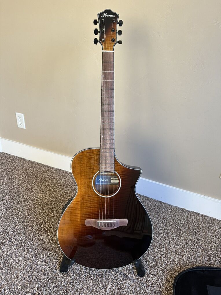 VenmoIncluded with strap and a soft case, I’ve never taken this guitar anywhere, I got it in January and haven’t played too much since. It’s a really nice thin line acoustic guitar with great electronics and it has a built in tuner, just looking for something else for my needs. $550 obo