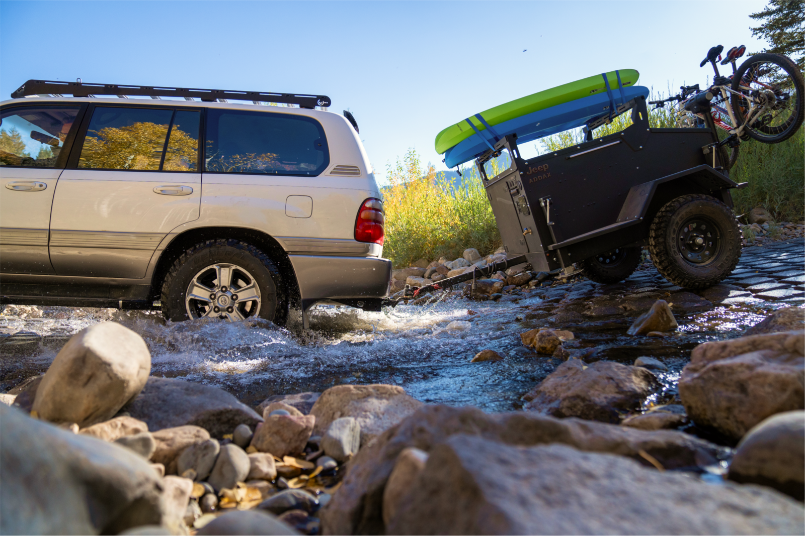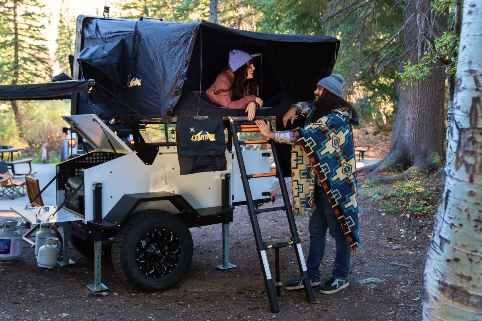 The fully loaded Basecamp by JEEP® Addax takes simple camping to new heights, incorporating fully-equipped kitchenette with a 50 L electric fridge/freezer and pull out countertop and prep area. With its collapsible sink basin, storage drawer, and comprehensive amenities, The Basecamp transforms your camping into a simple home away from home.