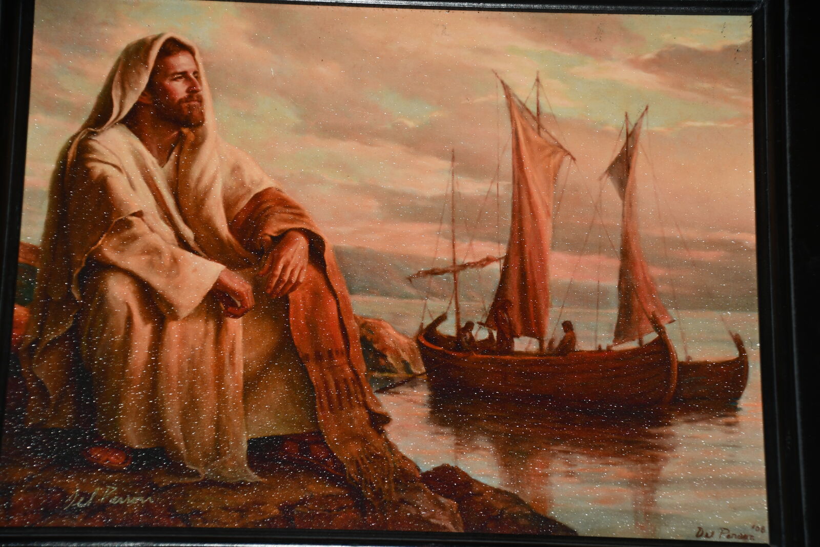 This "FACING ETERNITY" JESUS PICTURE by DEL PARSON is about 17" x 20" FRAMED. Our home is smoke free. Questions??? Please ask. We are located in Plain City. Cash only please.