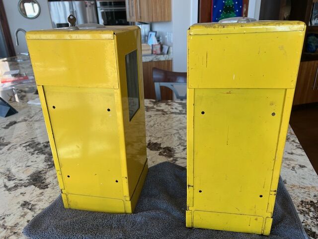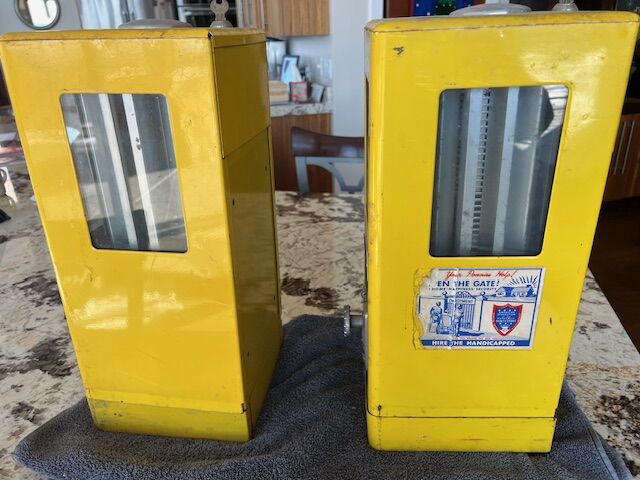 VenmoWe acquired these from the garage attic of a cabin we purchased a few years ago. Don't know much more about the machines other than the name. The price is for both machines, and this is more than half of what we researched the price for one restored. They have keys. We have not cleaned them at all or inspected them. There does appear to be one pack of gum in a machine (pictured).