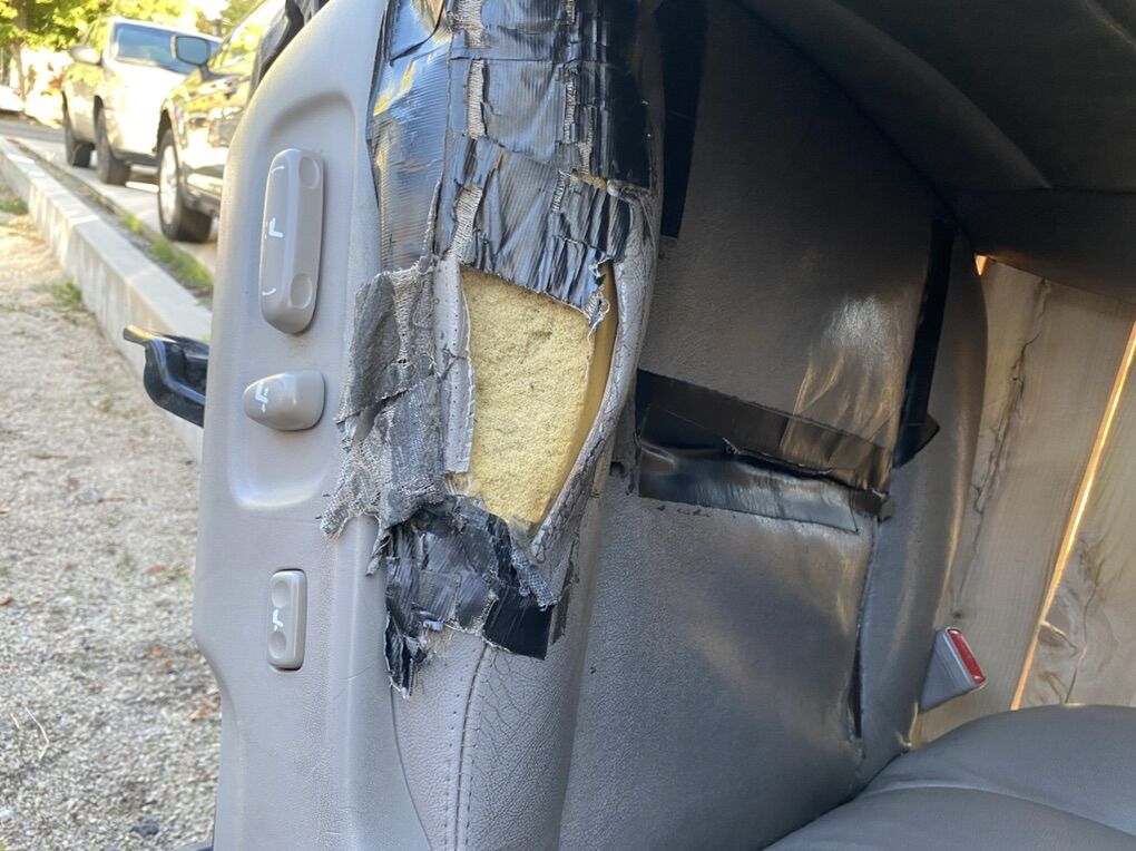 The seat covers and lower bolsters are pretty beat up as shown in photos, BUT they are the power seats with factory seat heating elements & factory hi/lo switches. Perfect for you to swap your seat bases out & install the heater elements, which is pretty easy to do.