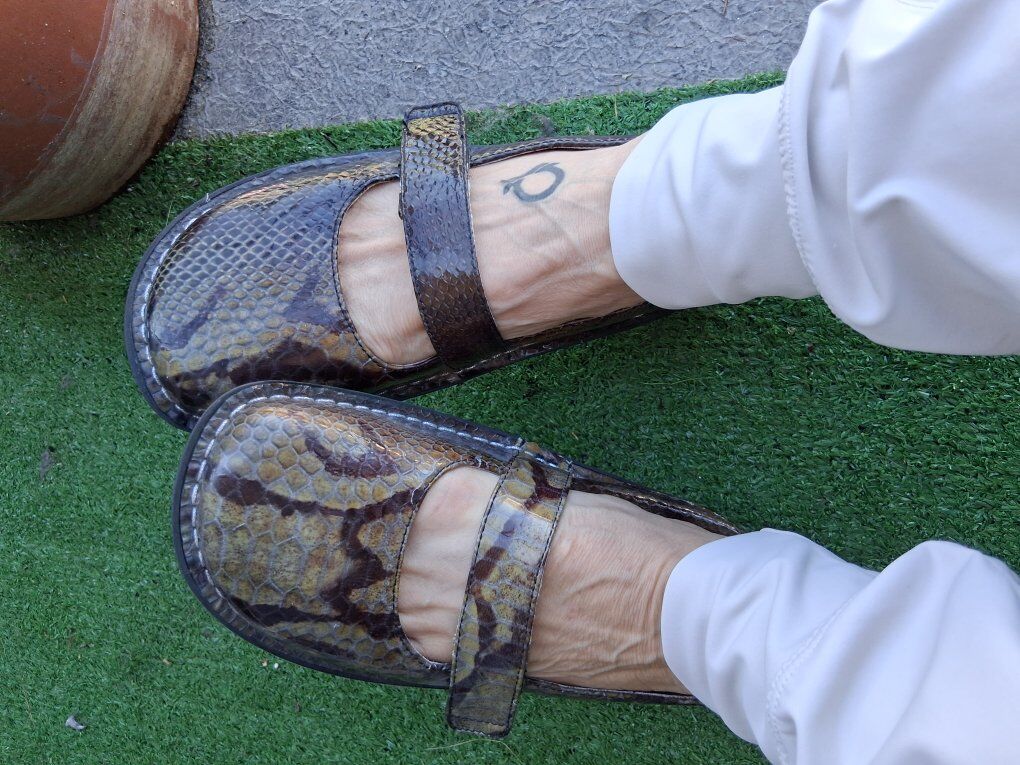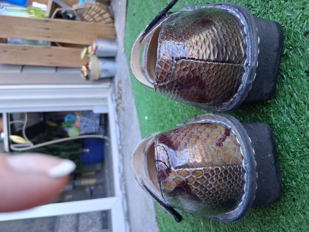 Us sz 8 1/2, black logo sole. Extremely cute, velcro closure.