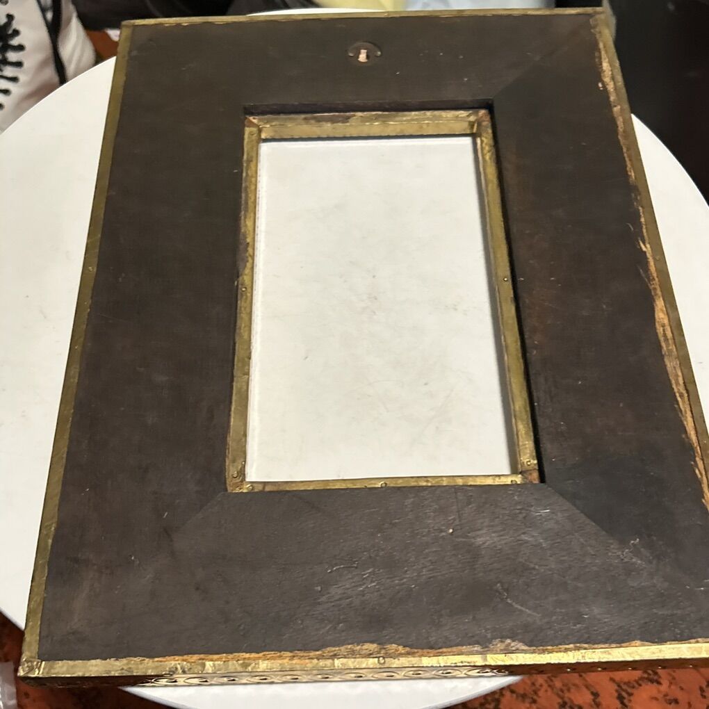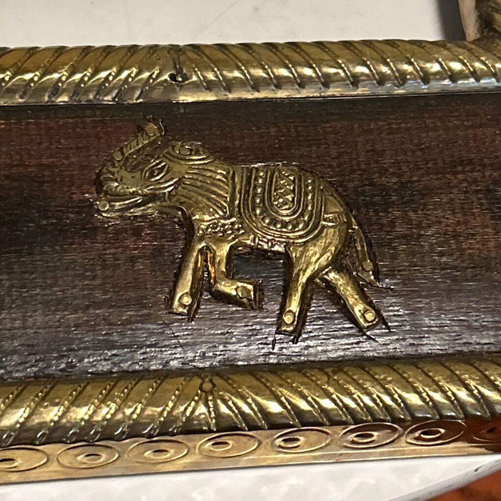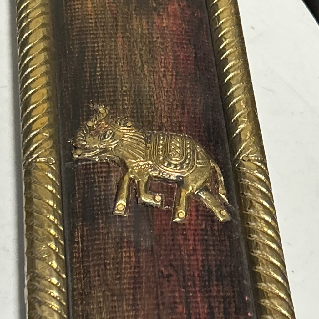 VenmoAntique Indian Wood & Brass Elephant Decorated MIRROR / PICTURE FRAME 16x12