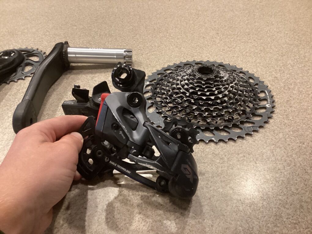 VenmoThe XX1 carbon cranks, Race Face crank covers, XO1 cassette, and the GX shifter pod are only 6.4 months old (195 days). The GX derailer is a little bit older, more like a year or two old. (I bought the derailer used.) the battery charger is brand new. The chain is only 24 days old.