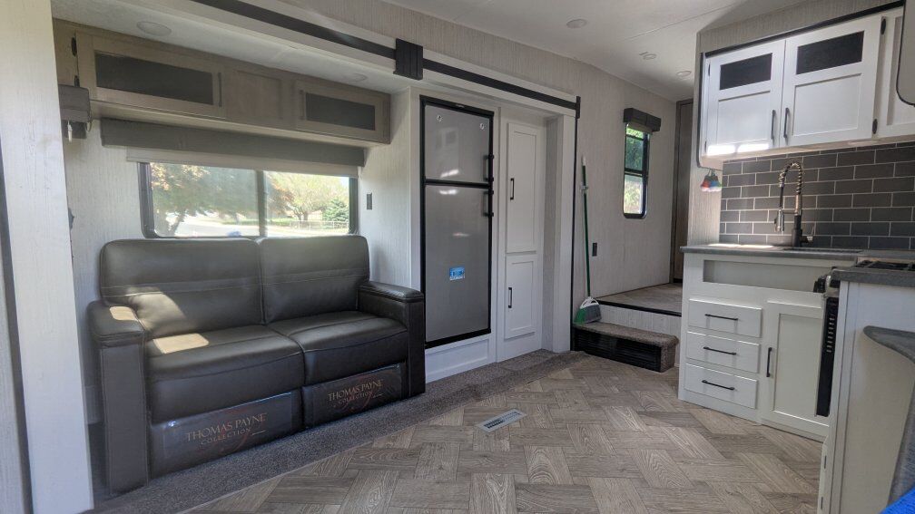 Asking what is owed on the fifth wheel trailer. Wife and I purchased a home and life events. Would like to save money and put towards home project right now. The fifth wheel connection will be included. Winterized on 10/05/2025 Sleeps 6 1 Slides U Shaped Dinette 30ft Long Cafe Latte Decor Sofa Front Private Bedroom Outside Shower 1 - 100 watt solar panel would like to keep our bed that's in it but if u want it, we will part with it.