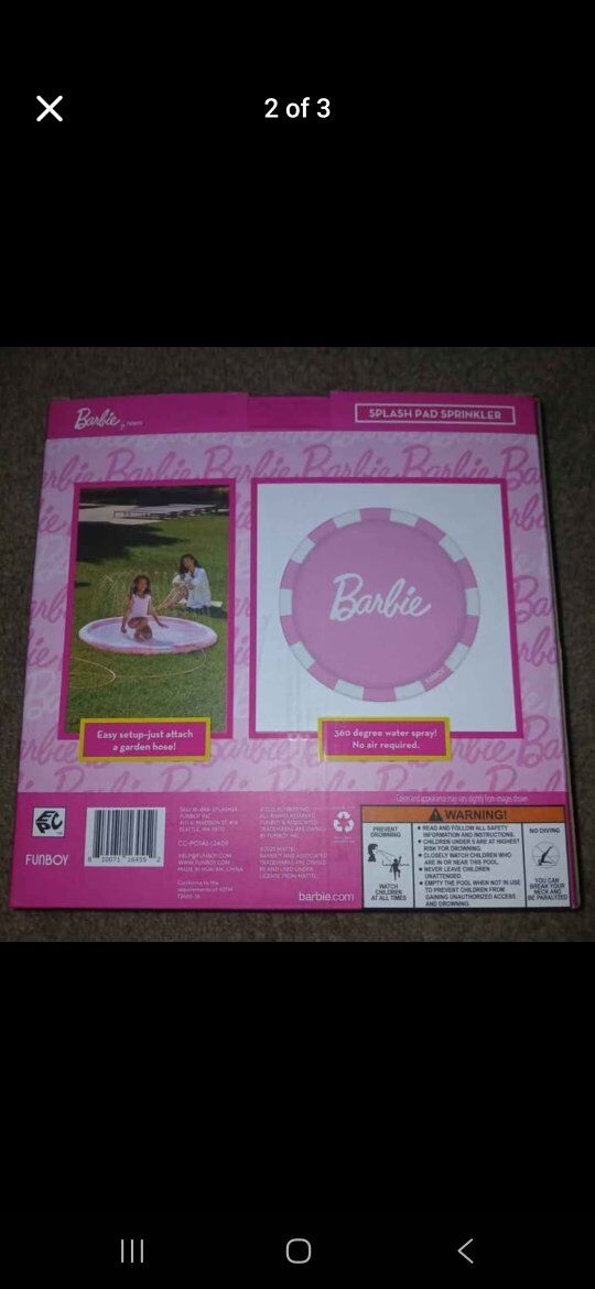 Barbie splash pad brand new! It's wonderful for the little ones to enjoy on a hot day, or to give as a present for birthdays or Christmas.