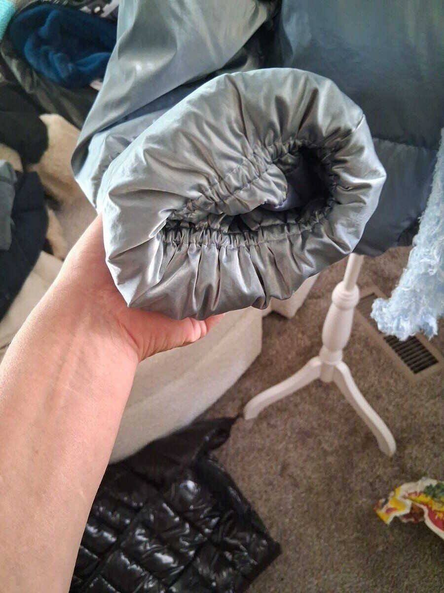 Zip up, machine washable. Super warm and cozy.
