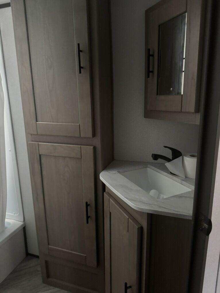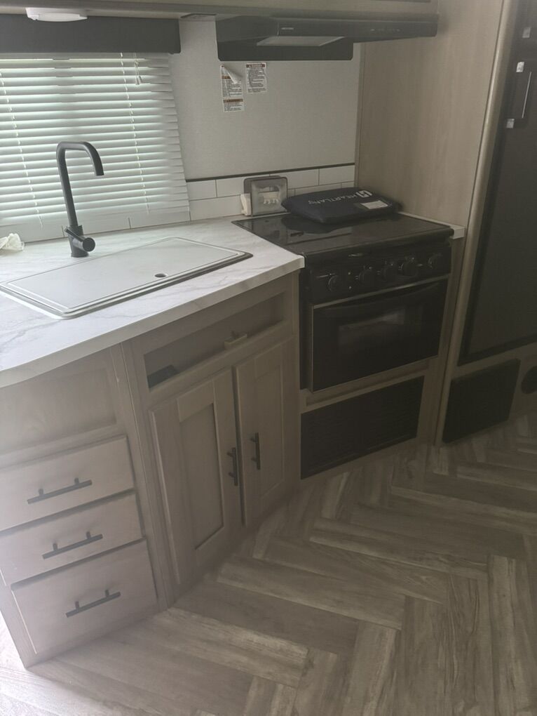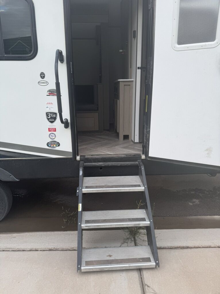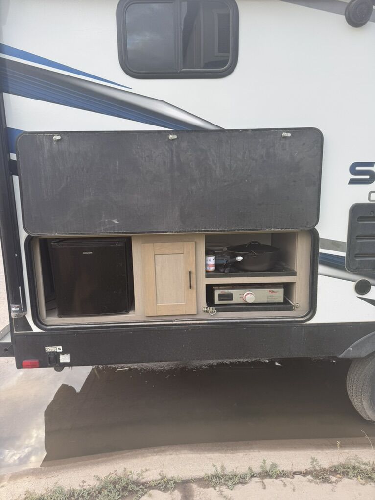 This camper is very clean everything work. It has a very cool compartment on the back side with a fridge a cupboard and a slide out griddle! It has power front lifting jack and front and rear stabilizer arms that are power also. Two propane tanks in the front under a cover. Slide out works like a charm never skips a beat and doesn't leak. Awning works perfectly no tears or holes. New tires a year ago and didn't put many miles on them. Has the front compartment that goes all the way threw with a slide out hide compartment under it. I am just looking to get something bigger. just trying to get what I owe!