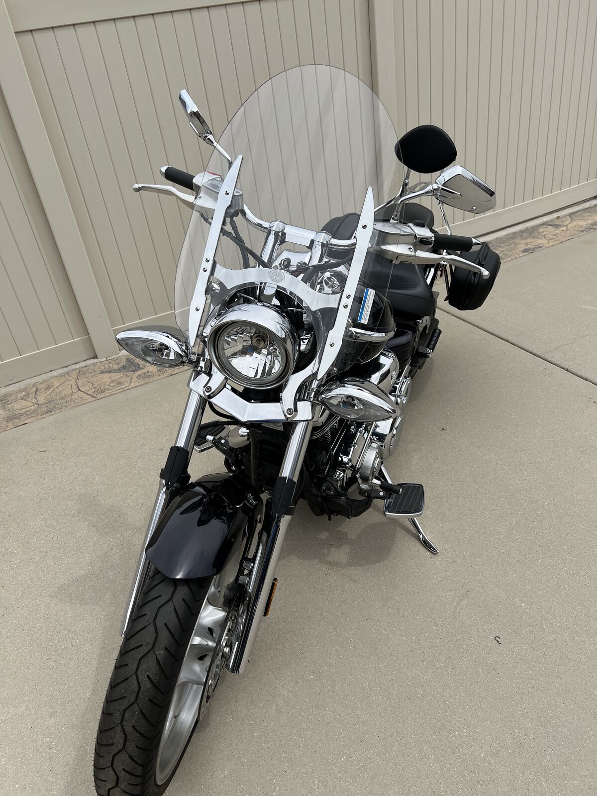 This is a beautiful bike with purple special order paint. Custom cobra tailpipe and OEM saddlebags. Custom handle grips, front windshield, passenger seat rest. Custom spoke wheels and chrome belt cover.