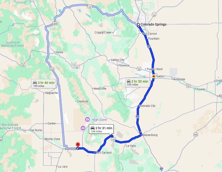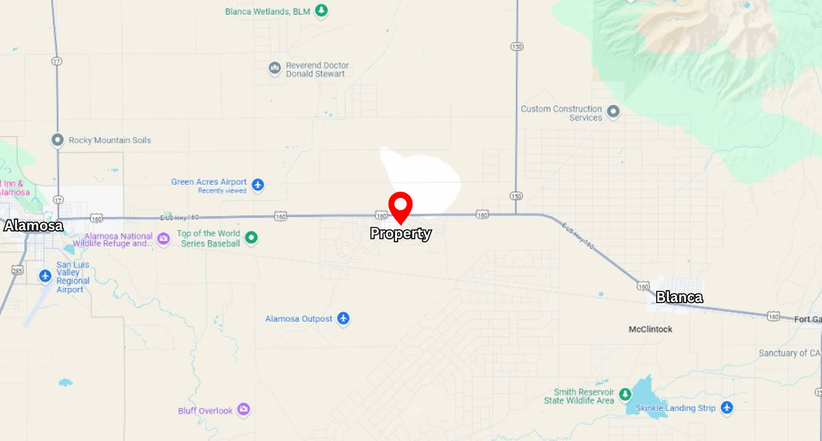 General Location: 11.6 miles to Alamosa, and 155 miles to Colorado Springs