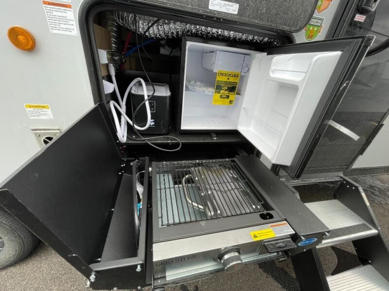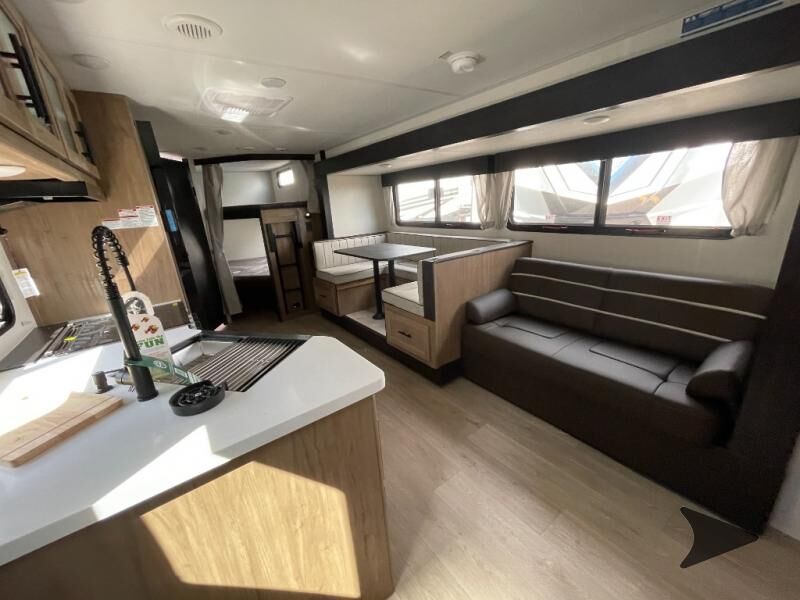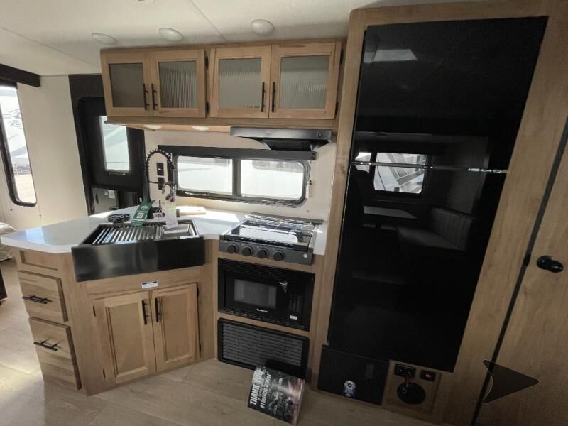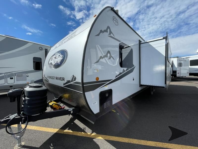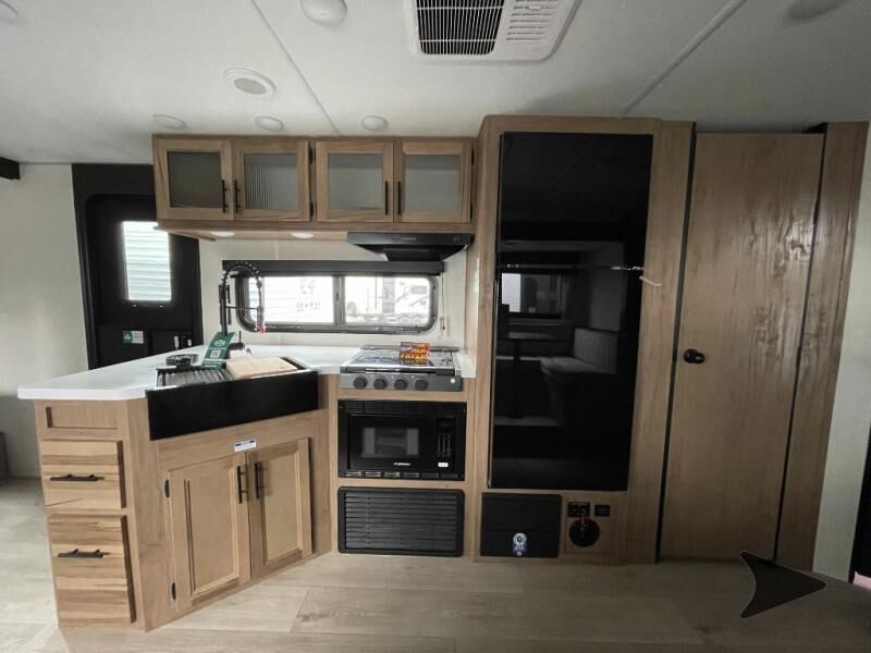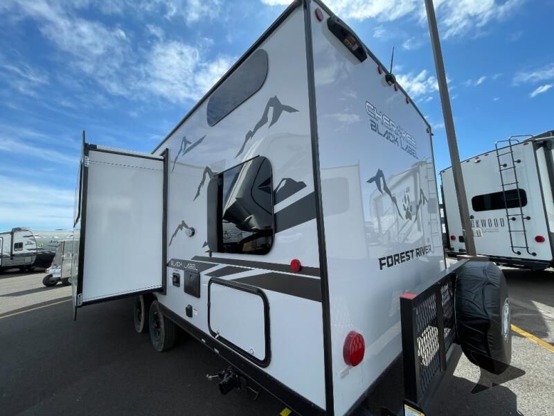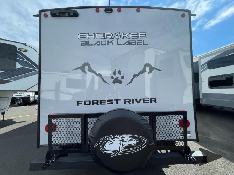 Forest River Cherokee Grey Wolf Black Label travel trailer 26DBHBL highlights: Double-Size Bunks Dual Entry Walk-In Pantry U-Shaped Dinette Outdoor Kitchen Come on inside this Cherokee Grey Wolf Black Label travel trailer and experience the convenience of a smooth flow of traffic in and out with two entry doors. The rear door leads into a full bath which is great for accessibility when outside and when you need to use the bathroom. Once inside, you will notice the largeU-shaped dinetteand the sofa which sit on the slide and create a spacious footprint for moving about, as well as great places to play games and socialize with your friends and family. Alargepantryprovides plenty of storage allowing you to stock up on your favorite snacks and dry goods for your family adventure. At night, there is sleepingspace for everyonebetween thedouble-size bunksand the RV king bed, plus the furniture. Whether it's a journey that will take you to new locations or a tried-and-true getaway to that favorite and memorable destination, the Forest River Cherokee Grey Wolf Black Label travel trailers and toy haulers are going to make the trip worth it every single time! The Black Label Package includes Thermo-Foil Arctic insulation, hungfiberglass gel coat sided walls, and frameless window package. There are alsoupgraded solid surface countertopsand reading lights, plus designer cushion fabrics to make you feel right at home. You can travel in confidence with the premium wheel package, seamless roofing membrane with heat reflectivity, Power Gear frame technology with space-saver rail design, and Cherokeeback-up camera system.