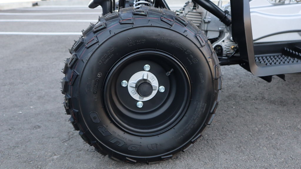 Aggressive Duro® AT18 x 7-8 front and AT18 x 9-8 rear tires provide excellent grip, control, and off-road aesthetics.