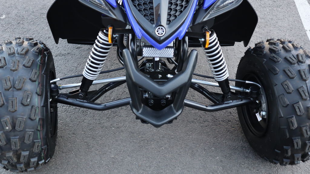 A-arm front suspension with preload-adjustable shocks delivers 5" of travel. Rear swingarm features 5.7" of travel with a 5-way adjustable shock for smooth trail rides.