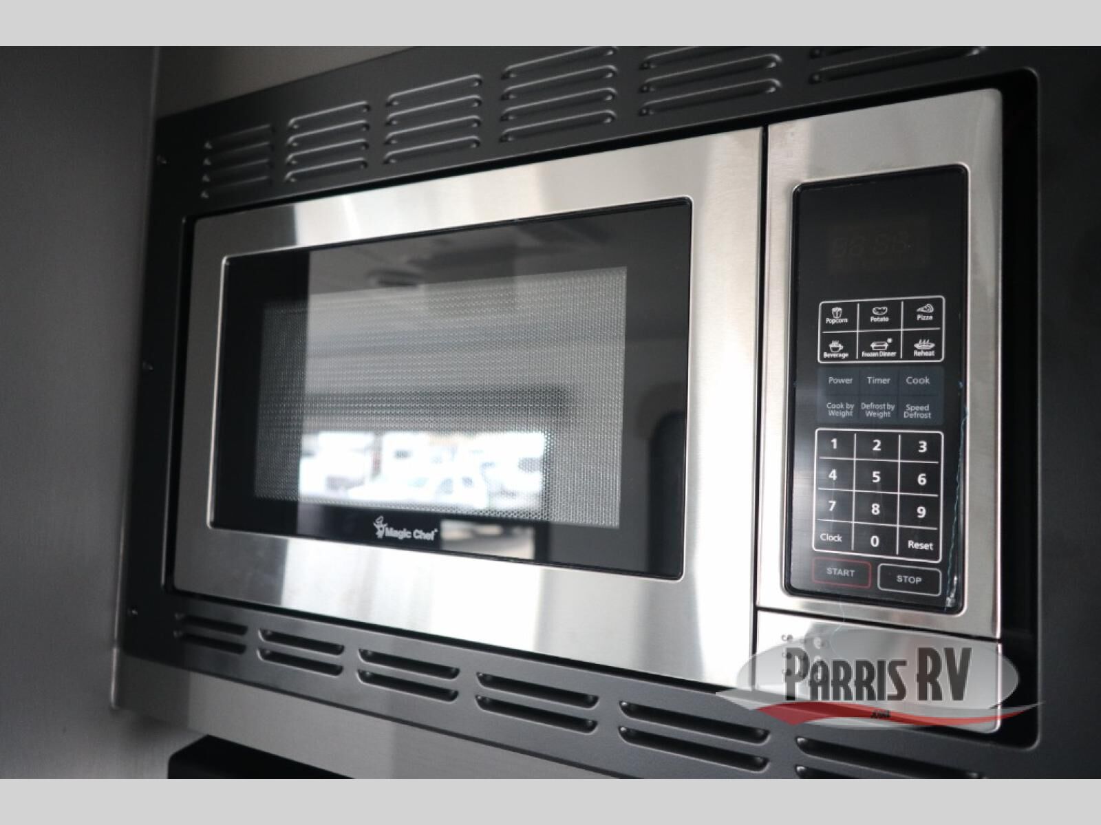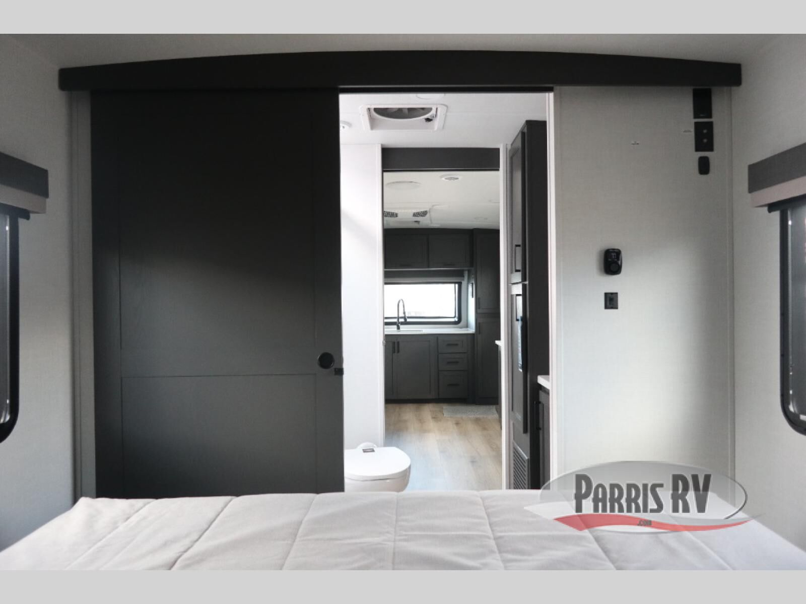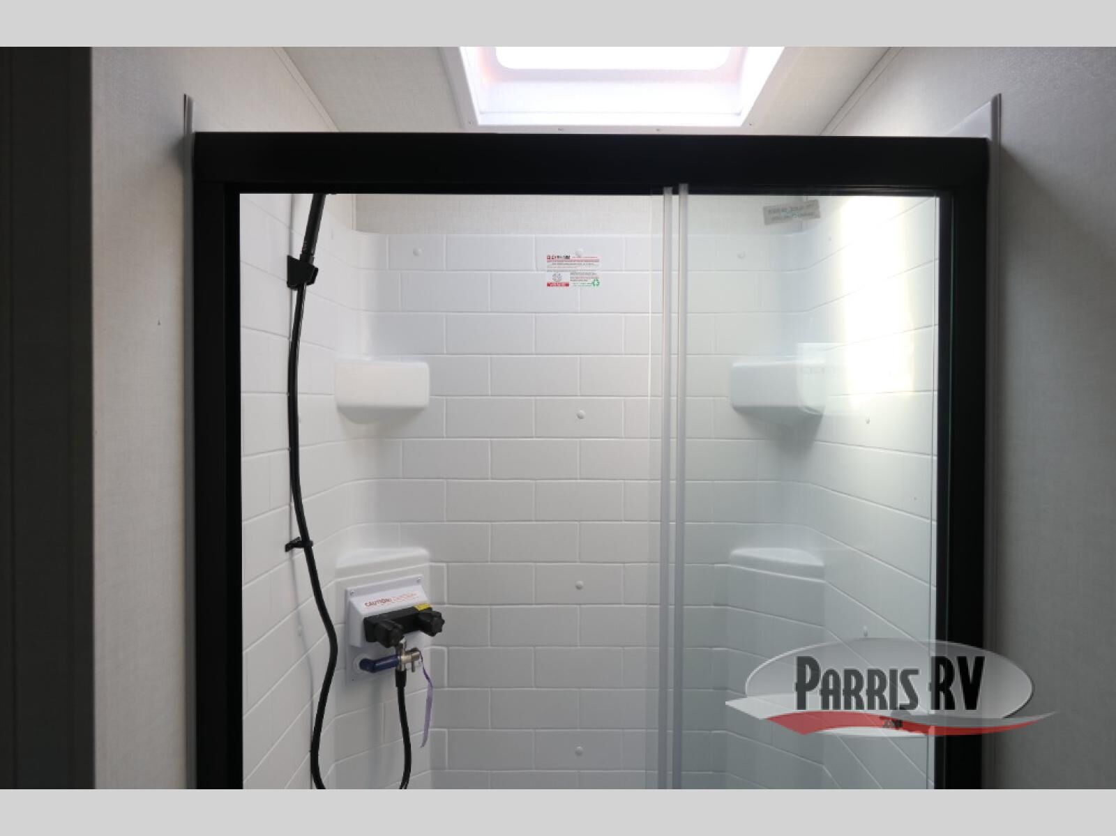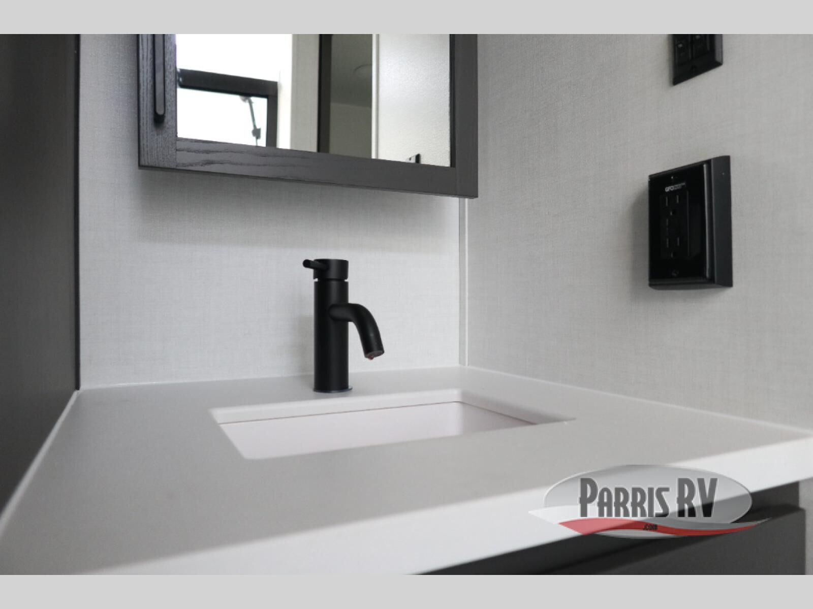 This Rockwood Ultra Lite 301FKT is fit for a cook! As soon as you step inside, you're greeted by the spacious front kitchen. Designed for convenience and style, it has long solid surface countertops that provide ample space for meal prep and organizing utensils. The overhead cabinets offer plenty of room to store dishes and ingredients for all your favorite recipes. After cooking, you can unwind on the 67" theater seat facing a TV with a lift, perfect for movie nights or catching up on your favorite shows. For meals, enjoy dining at the flip-up table with folding chairs, ideal for sharing breakfast, lunch, or dinner with your partner. And when it's time to relax, a full bathroom leads to the rear bedroom, where a king-sized bed awaits to give you a restful night's sleep.