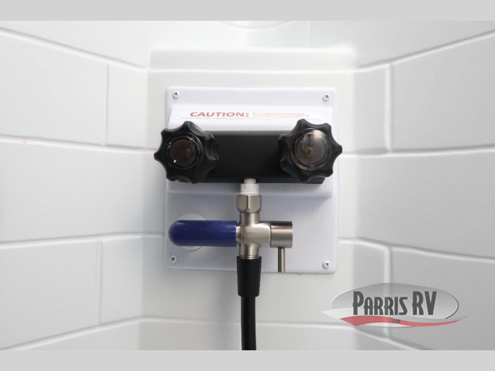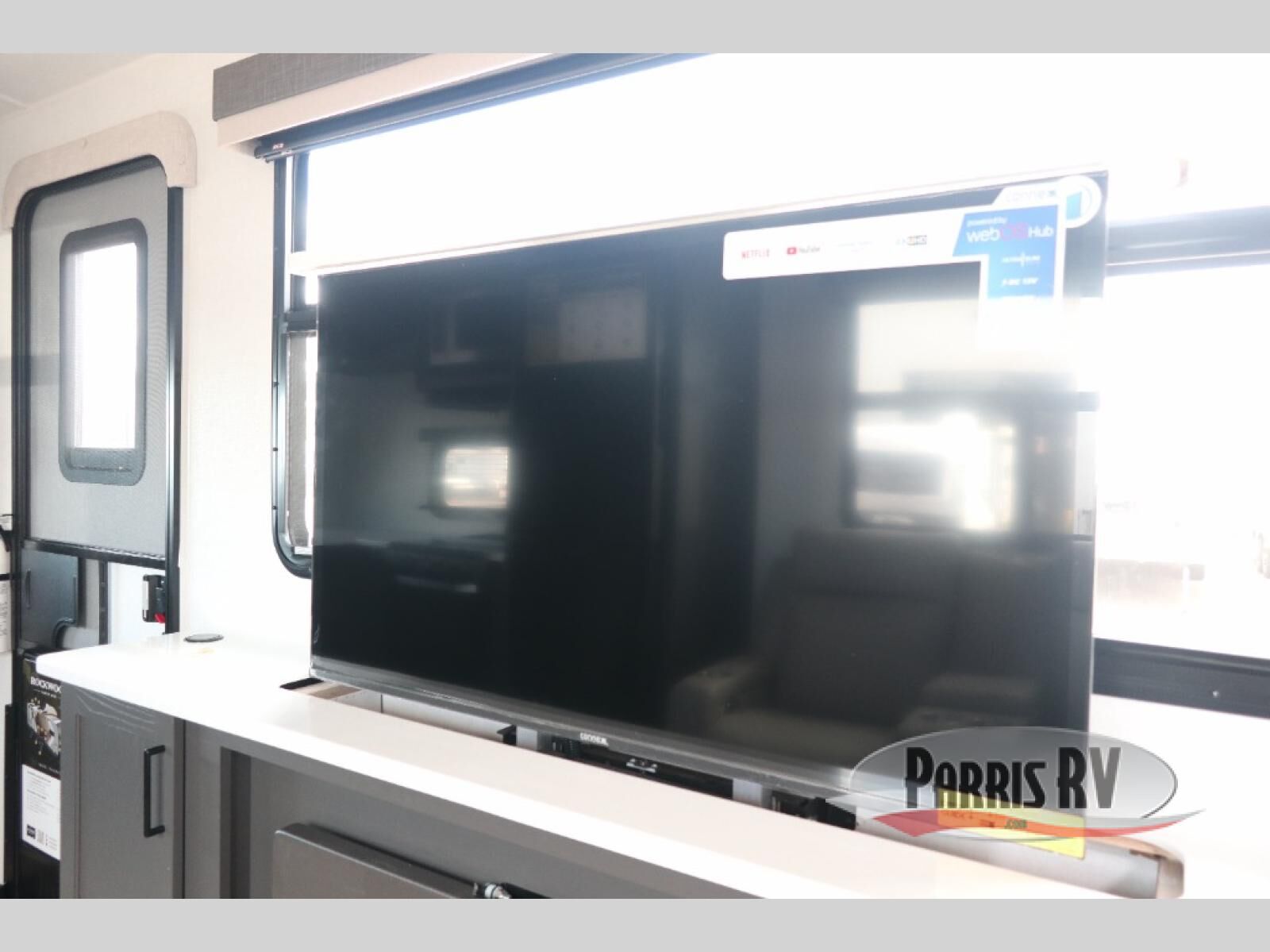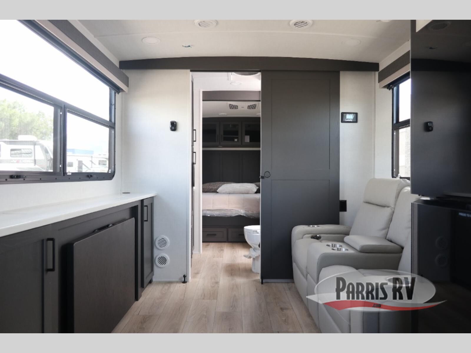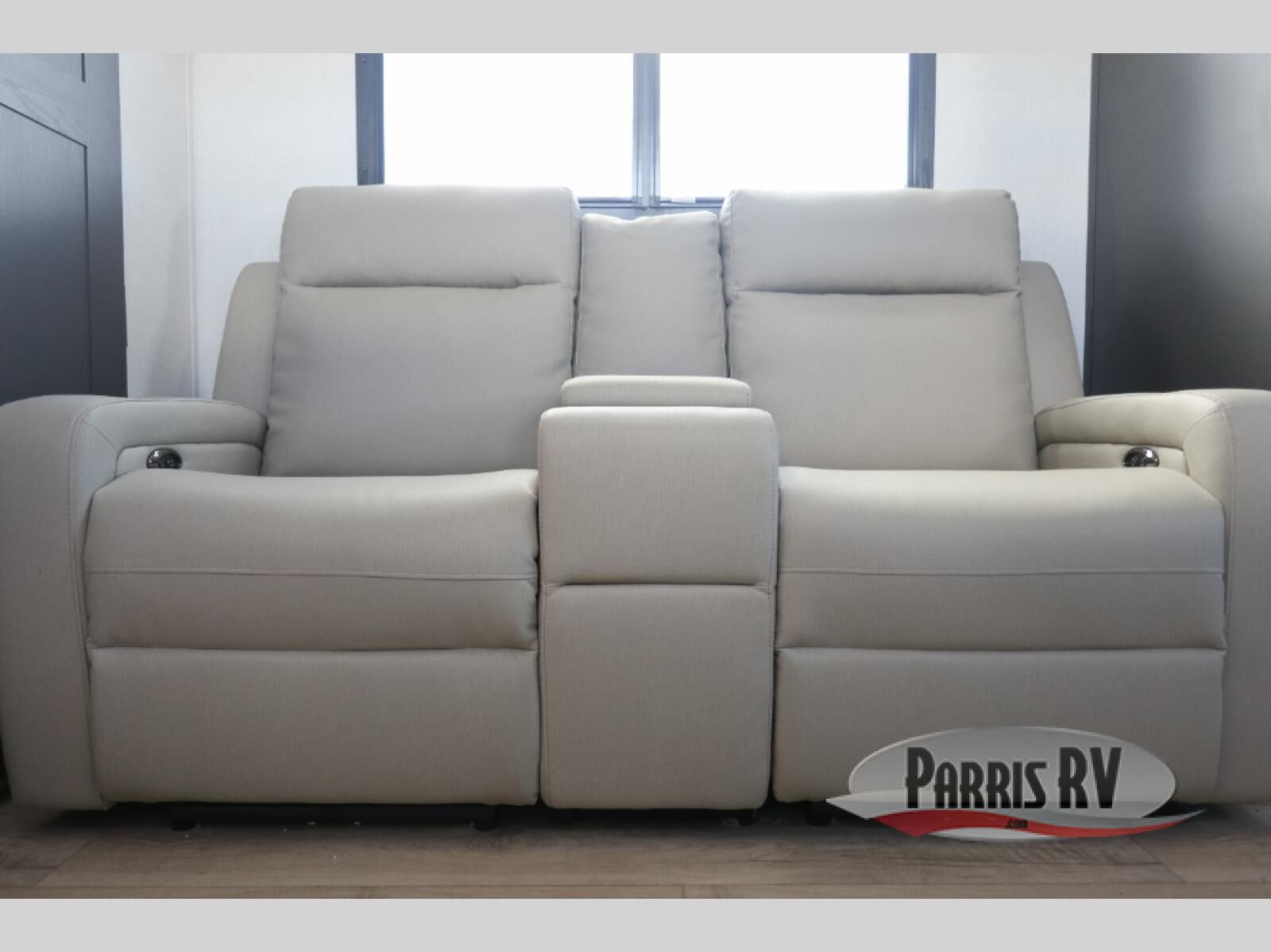 This Rockwood Ultra Lite 301FKT is fit for a cook! As soon as you step inside, you're greeted by the spacious front kitchen. Designed for convenience and style, it has long solid surface countertops that provide ample space for meal prep and organizing utensils. The overhead cabinets offer plenty of room to store dishes and ingredients for all your favorite recipes. After cooking, you can unwind on the 67" theater seat facing a TV with a lift, perfect for movie nights or catching up on your favorite shows. For meals, enjoy dining at the flip-up table with folding chairs, ideal for sharing breakfast, lunch, or dinner with your partner. And when it's time to relax, a full bathroom leads to the rear bedroom, where a king-sized bed awaits to give you a restful night's sleep.