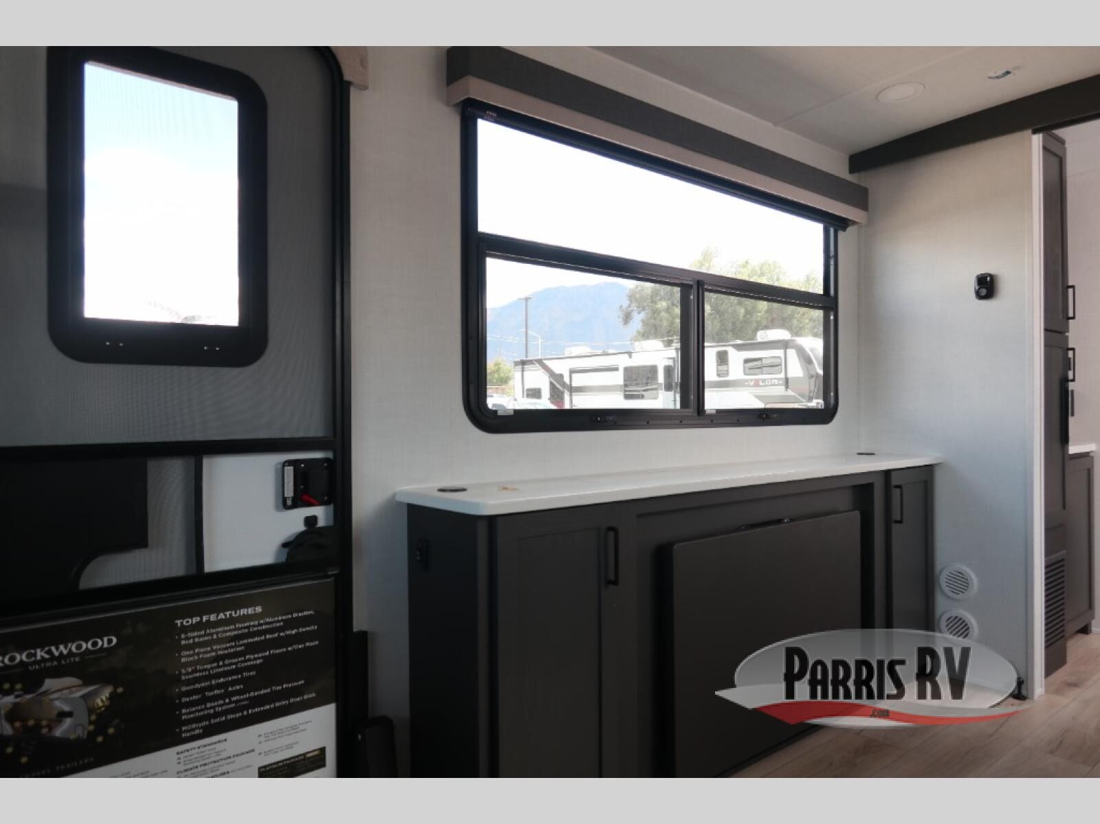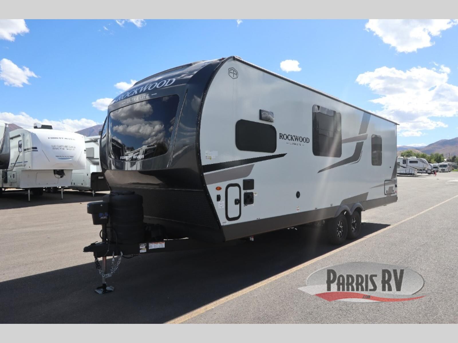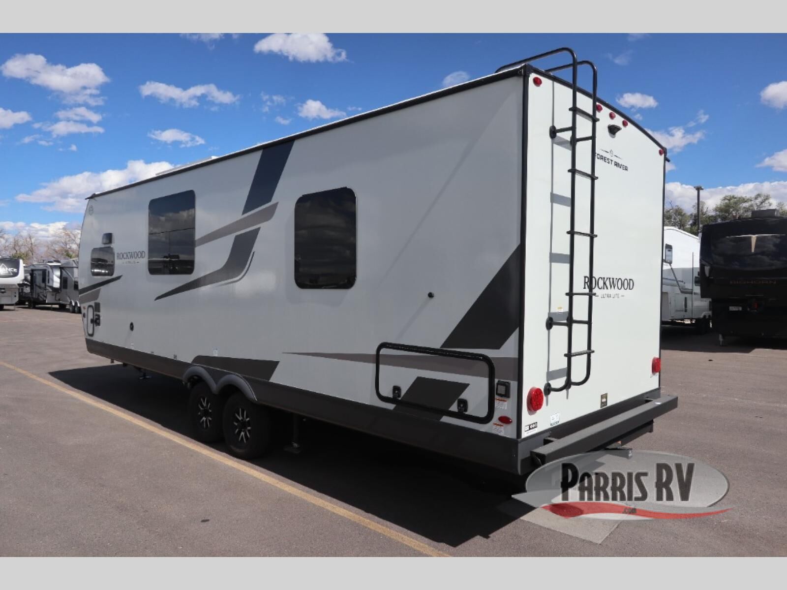 Each Rockwood Ultra Lite travel trailer by Forest River includes superior construction with a high gloss fiberglass cap, aluminum cage construction, and a power awning with LED lighting for a cozy and functional outdoor space. The torsion axle, power tongue jack will make towing smooth and hassle-free, along with the nitrogen filled, Goodyear Endurance tires and the tire pressure monitor system. Interior comforts include kitchen sink with high rise faucet, hidden hinge cabinet doors, and roller shades to name a few. Choose a Rockwood Ultra Lite travel trailer today!