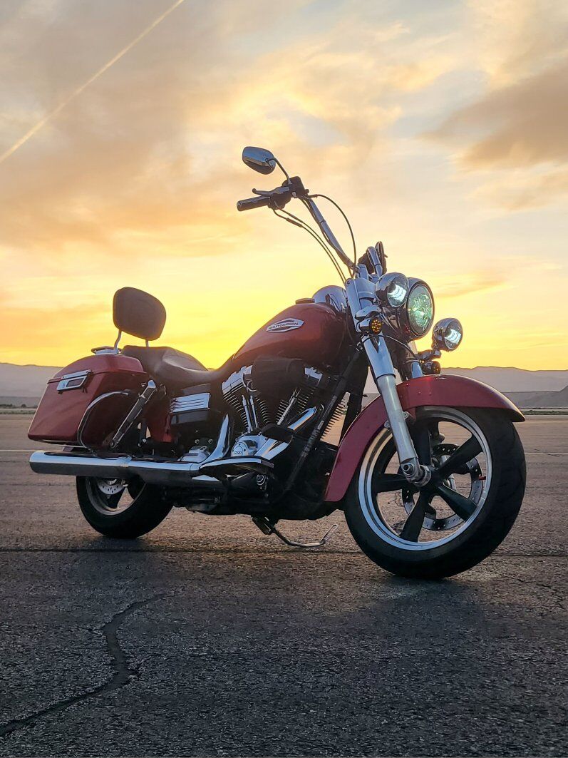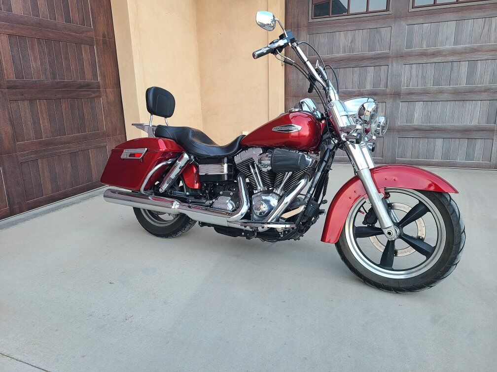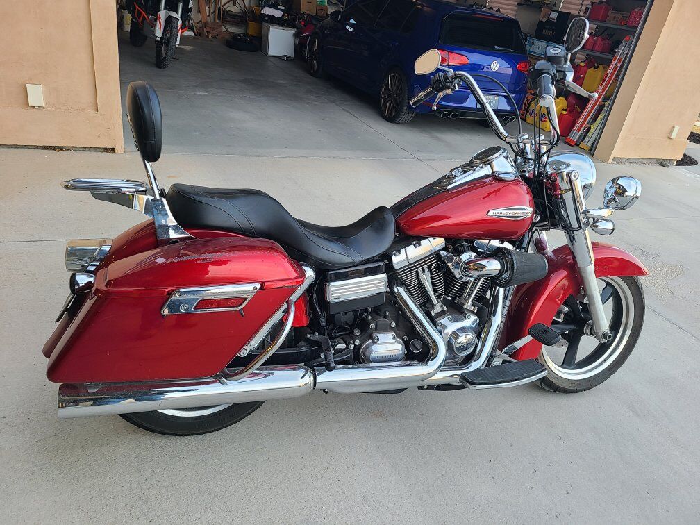 google summary: The 2012 Harley-Davidson FLD Dyna Switchback is a "convertible" motorcycle designed to be both a boulevard cruiser and a long-distance tourer. It achieves this versatility with a detachable windshield and color-matched, hard-shell saddlebags that can be removed or installed without tools in under a minute. The bike is powered by a 103 cubic-inch Twin Cam engine, features a 6-speed transmission, and has classic styling with modern touches like cast aluminum wheels and a 2-into-1 exhaust. Key Features & Specs Engine: 103 cubic-inch (1690cc) air-cooled Twin Cam V-Twin engine. Transmission: 6-speed. Torque: 100 ft-lbs at 3,500 rpm. Fuel System: Electronic Sequential Port Fuel Injection (ESPFI). Chassis: Lightweight Dyna chassis with a low seat height and easy-handling feel. Convertible Design: Quickly converts between cruiser and tourer by detaching the windshield and saddlebags. Wheels: 5-spoke, black cast aluminum wheels. Brakes: 4-piston front and 2-piston rear calipers; ABS was an available option. Styling: A mix of classic (headlight nacelle, mini ape hanger handlebars) and contemporary (clean lines, modern wheels). Versatility Explained Cruiser Mode: Remove the windshield and saddlebags to create a nimble, classic-looking street bike. Tourer Mode: Attach the detachable windshield and saddlebags to transform it into a capable machine for longer rides.