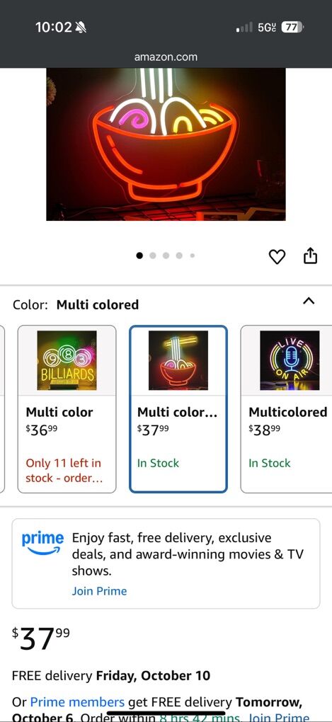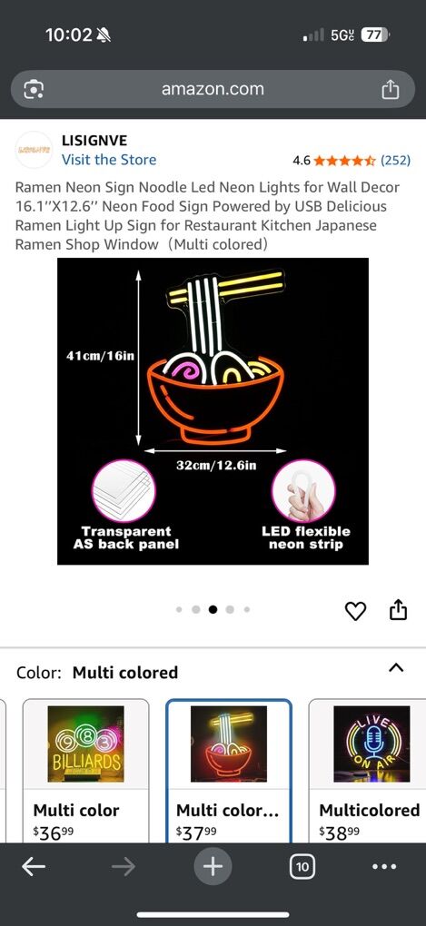 VenmoRamen Neon Sign Noodle Led Neon Lights for Wall Decor 16.1’’X12.6’’ Neon Food Sign Powered by USB Delicious Ramen Light Up Sign for Restaurant Kitchen Japanese Ramen Shop Window(Multi colored)Retails for $38 asking $25, multiple available. Cash or Venmo. Call or text Scott at 603-558-5759.