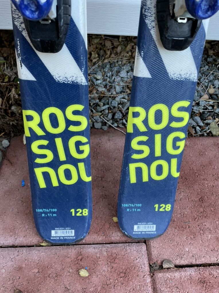 Here we have a good pair of Rossignol Terrain youth skis. Size 128 with adjustable Rossignol bindings. See pics for details and condition. Call or Text