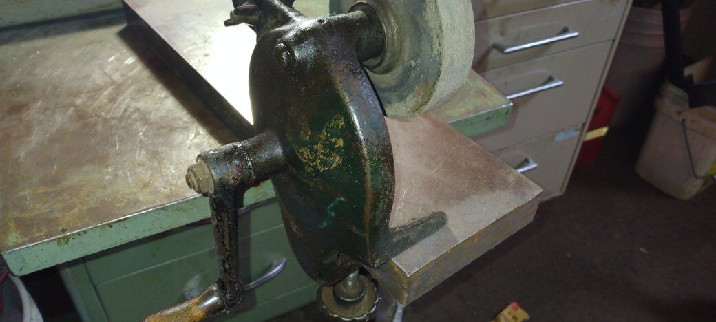 Antique knife and tool sharpenner with tool rest, portable and very smooth operating handle. I live in Petersboro which is west of Logan a few miles.